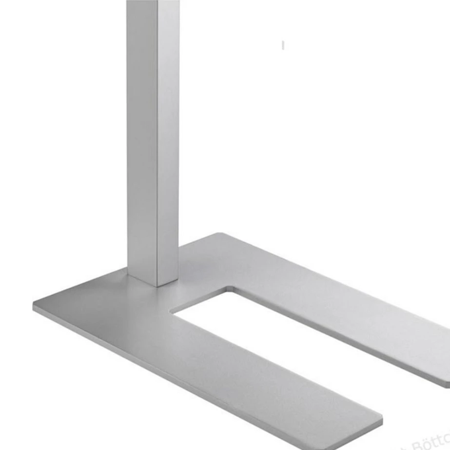 Rahmen des Kopfes und Mast bestehen aus silberfarbenem Aluminium, der Fuß der Leuchte aus beschichtetem, silber lackiertem Stahl.