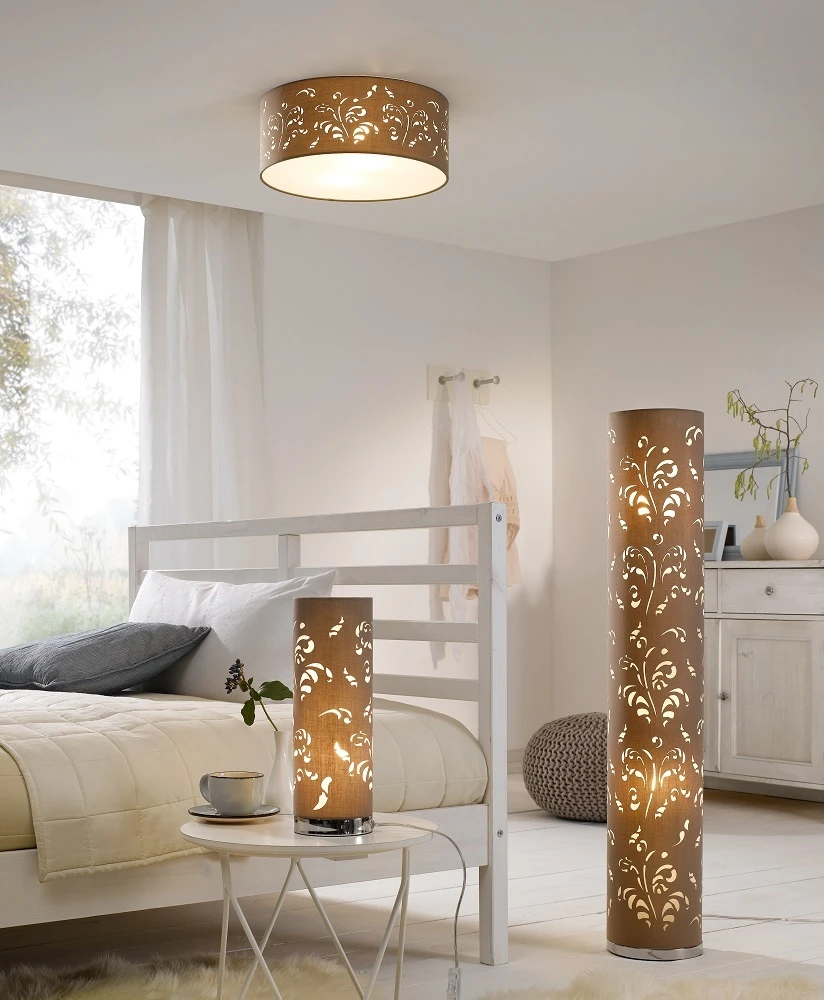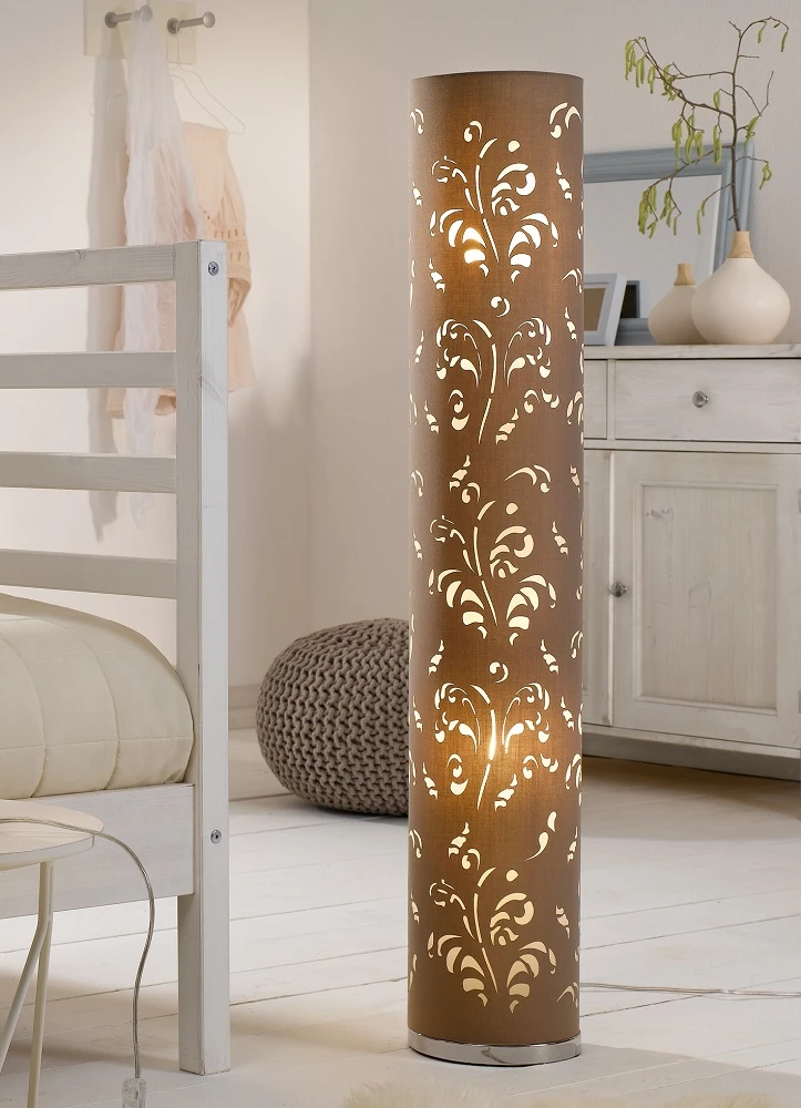 Die Standleuchte in Zylinderform spendet angenehmes Licht und wirkt gleichzeitig dekorativ.
