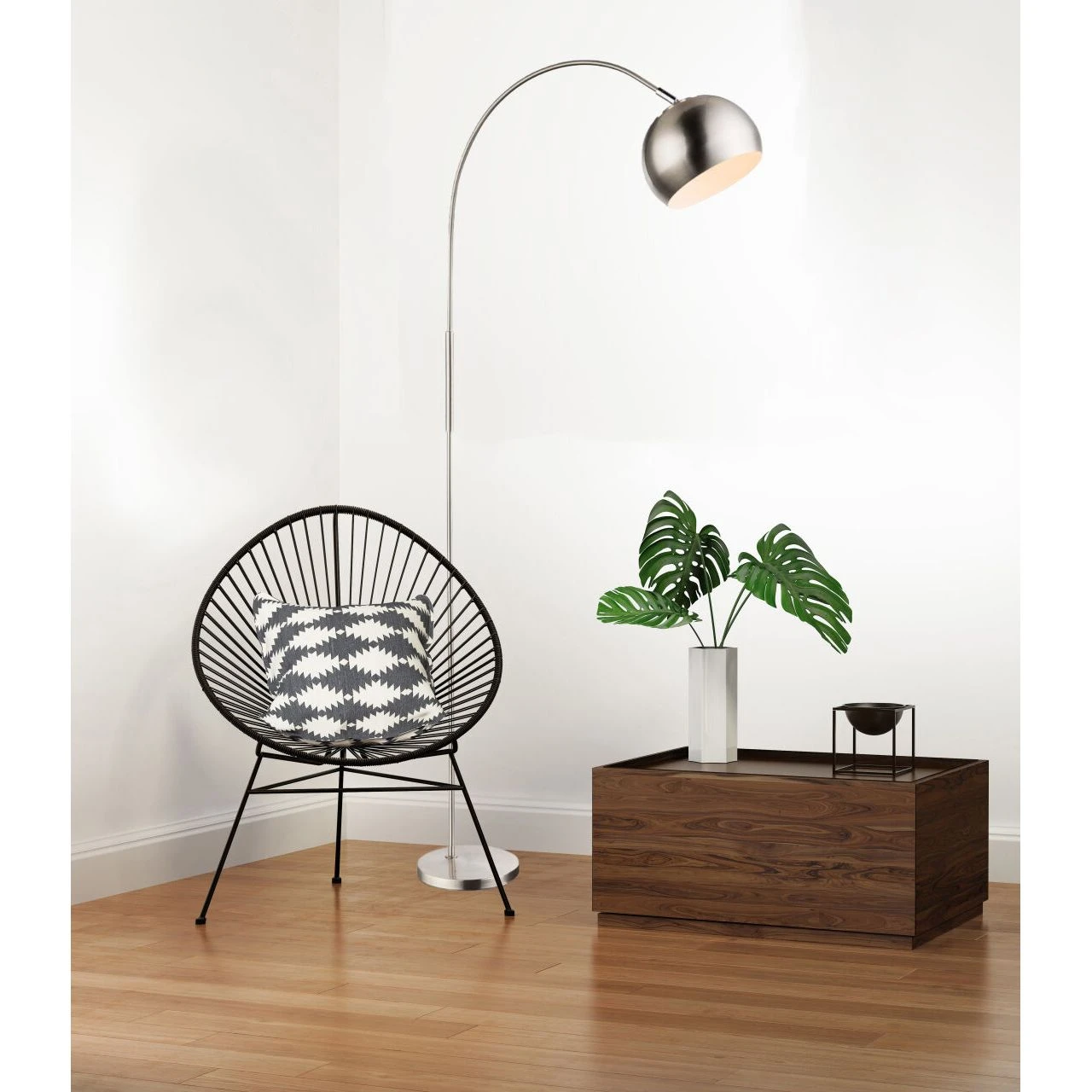 Egal, ob Esszimmer oder Büro, diese Stehlampe überzeugt durch ihr schönes nickel-mattes Design. Die 150cm hohe Innenleuchte ist oben gebogen und mündet beim eleganten runden Lampenschirm. Diese Wohnleuchte verfügt über ein 1,8m langes Kabel, was es möglich macht die Position der Lampe zu verändern. Die Innenleuchte ist mit einer E27 Fassung ausgestattet und ermöglicht Ihnen somit ein Leuchtmittel Ihrer Wahl zu nutzen (max. 60 Watt). Wir empfehlen LED-Lampen aufgrund ihrer Stromersparnis und Langlebigkeit.