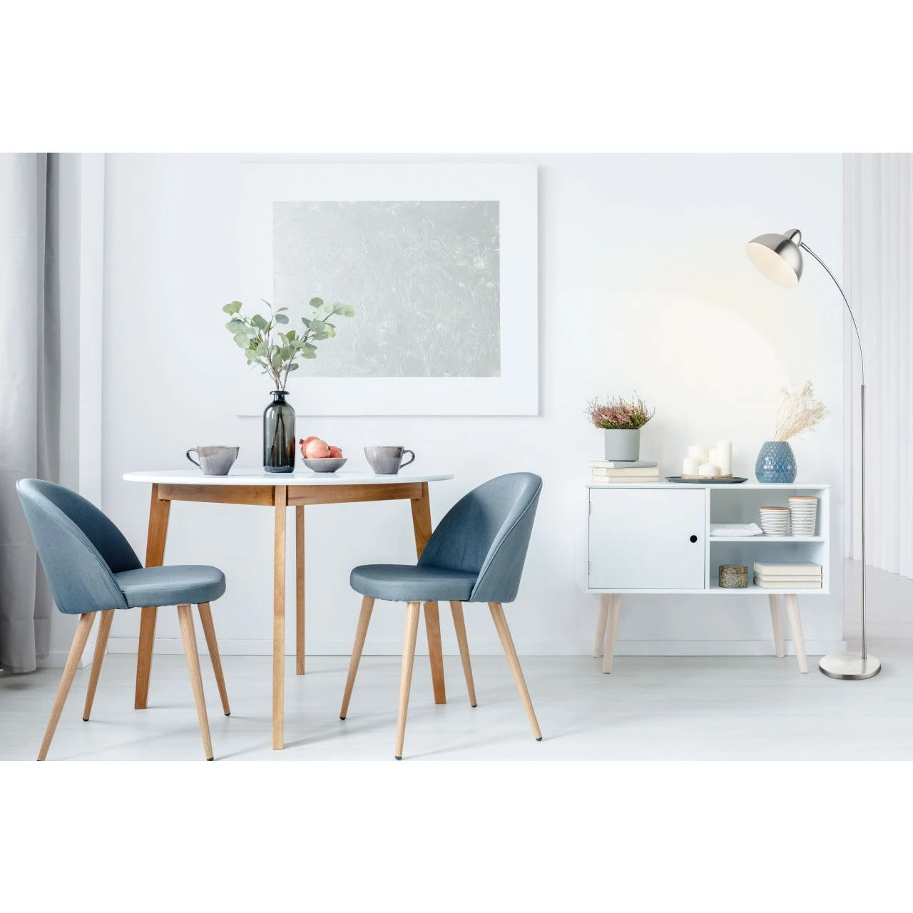 Diese Stehlampe verbindet den klassischen Stil mit einer aufregenden Materialkombination. Nicklematter Fuß und nickelmatter Lampenschirm werden von dem glänzenden Chrom des formschönen Lampenarms unterbrochen. Das Weiße im inneren dieses Lampenschirms sorgt für ein besonderes Licht. Die serienmäßige E27 Fassung dieser 1,55 Meter großen Tischleuchte ermöglicht Ihnen die freie Wahl des Leuchtmittels (max.60W). Aufgrund ihrer Stromersparnis und Langlebigkeit empfehlen wir LED-Lampen.