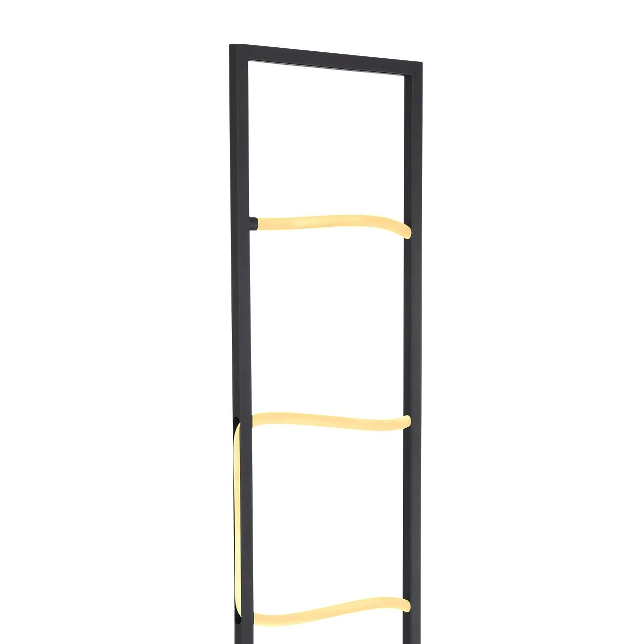 Diese Stehlampe aus der-Serie überzeugt durch Ihr modernes Design aus schwarz-mattem Metall und opalenem Kunststoff. Der rechteckige Metallrahmen (135×25 cm) ist dank der Standplatte sehr stabil und mit einem wunderschön geschwungenen Schlauch aus opalenem Kunststoff durchzogen. Die Stehleuchte leistet 860 Lumen starkes Licht bei einer stimmungsvollen Lichtfarbe von 3000 Kelvin (warmweiß). Außerdem ist das 180 cm lange Kabel mit einem inkludierten Schalter versehen, mit dem Sie die Stehlampe bequem ein- oder ausschalten können. Durch weitere Artikel der-Serie können Sie das Gesamtbild Ihrer Innenräume komplettieren.