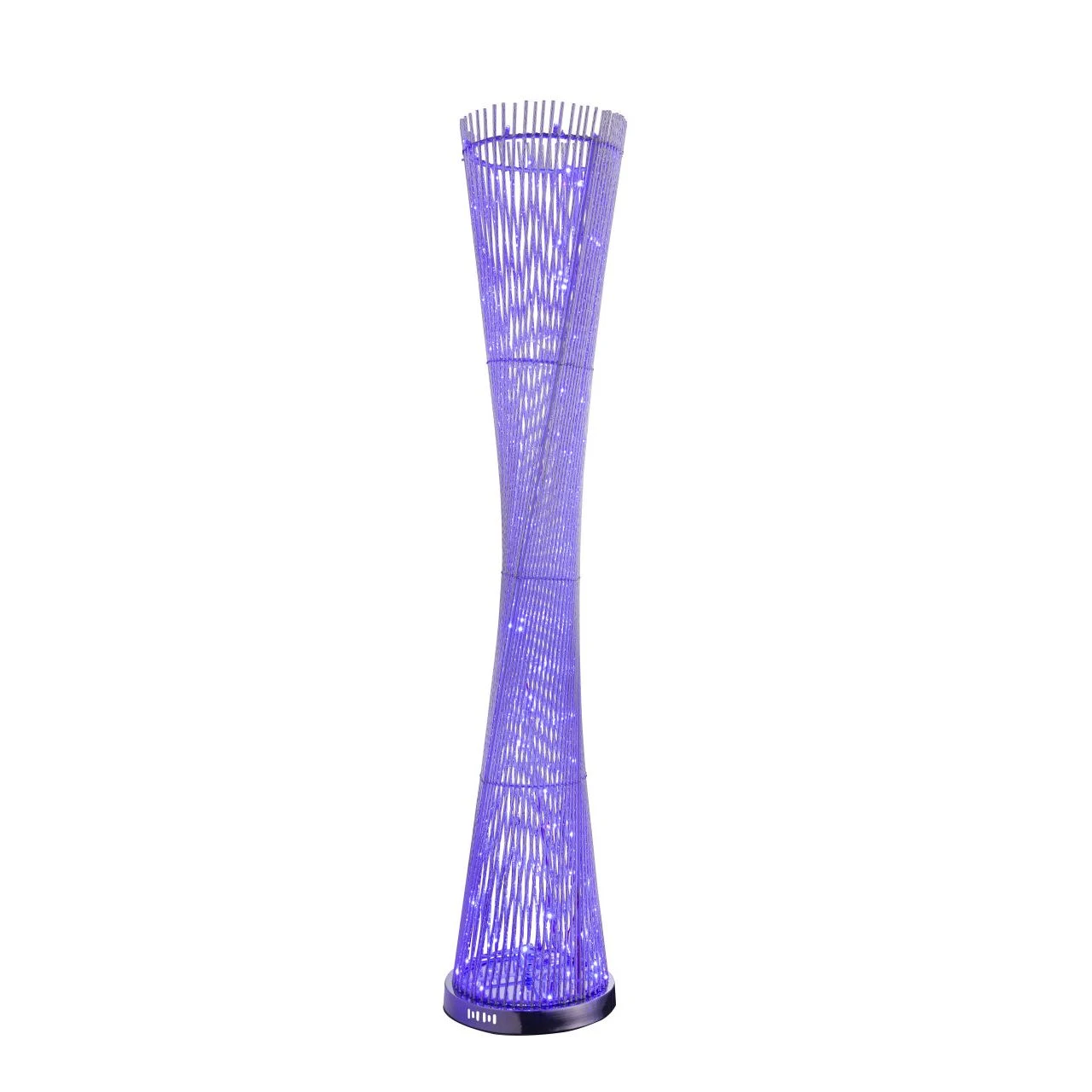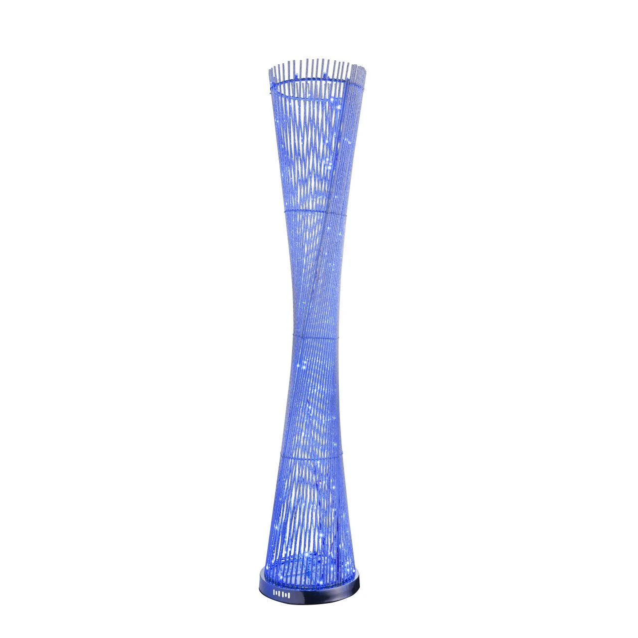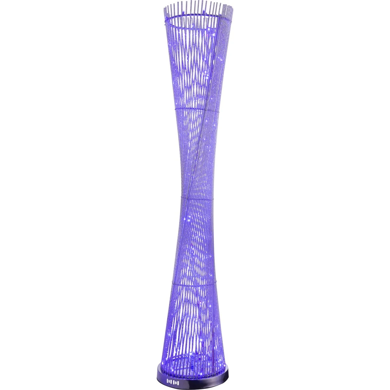 Diese außergewöhnliche Stehlampe, der Serie, zeichnet sich durch ihr schönes Design aus. Der runde Sockel hat einen silber-metallischen Farbton und die darauf montierten Stäbe sind gedreht. Dieses tolle Modell ist mit einer Größe von 1,43 Meter und einem RGB-Farbwechsler ausgestattet. Die Lampe kann mittels On-Off-Schalter gesteuert werden und verfügt über eine Lichtstärke von 720 Lumen. Vorteilhaft sind die lange Lebensdauer von 80000 Stunden und die hohe Energieeffizienz dieser Lampe.