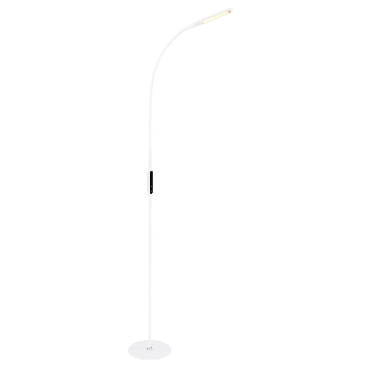Bei dieser LED-Stehleuchte (110cmHochx71cm x 22cm) hat man die Qual der Wahl. Man kann nämlich mittels des Drei-Stufen-Lichtfarben-Schalters zwischen fünf verschiedenen weißen Lichtfarben wählen von 2700K bis hin zu 5700K: Dadurch lässt sich die Stehleuchte an verschiedene Situationen anpasssen: z. B. gemütliche Stimmung mit warmweißem Licht oder konzentriertes Arbeiten mit universalweißem Licht. Durch einen Touchdimmer lassen sich die Farben ganz einfach dimmen und auch fixieren. Mit einem 2,3m langen Kabel und einer Höhe von 1,1m ist sie sehr flexibel und harmoniert mit wohnlich-modernen Stilen sowie architekturbetontem Ambiente.