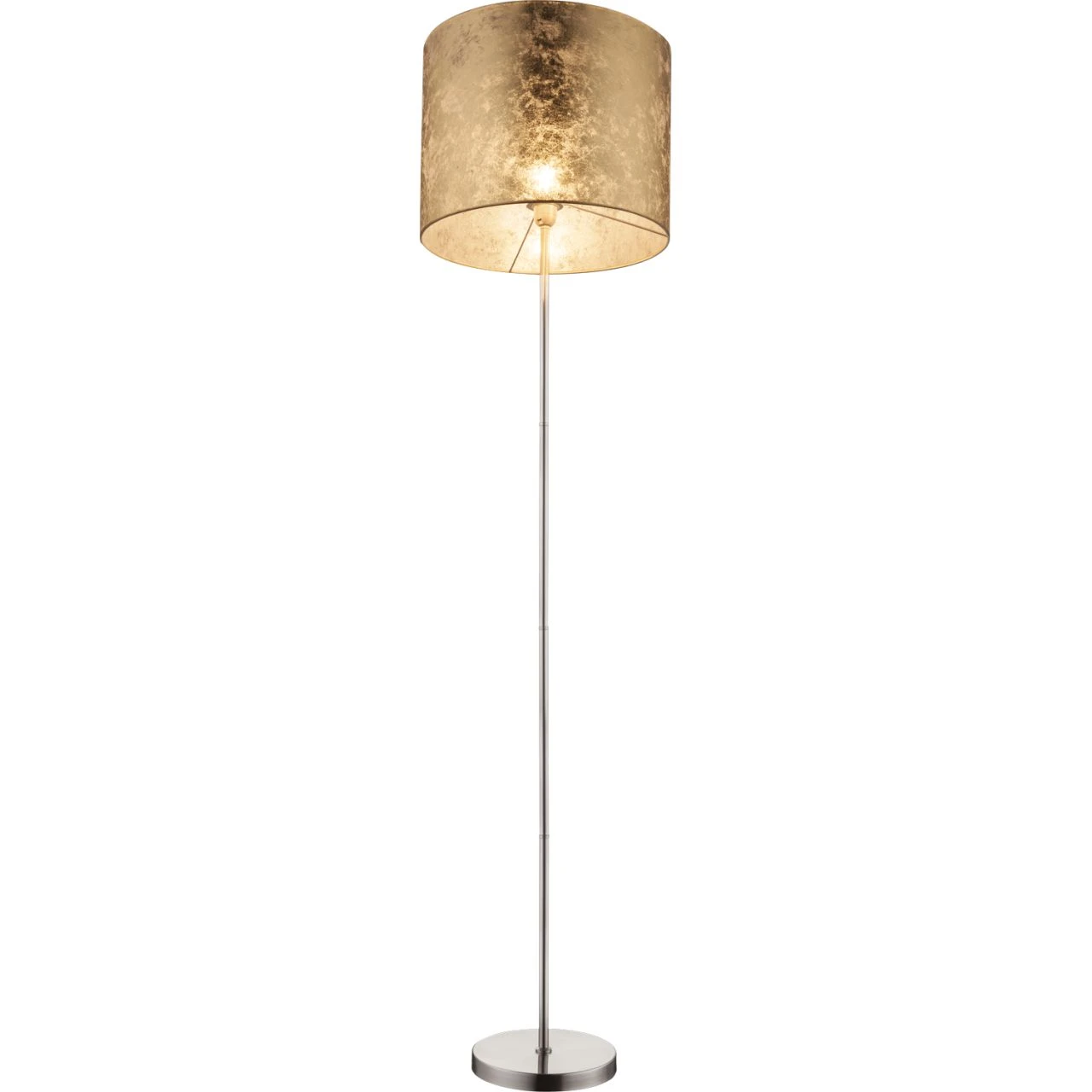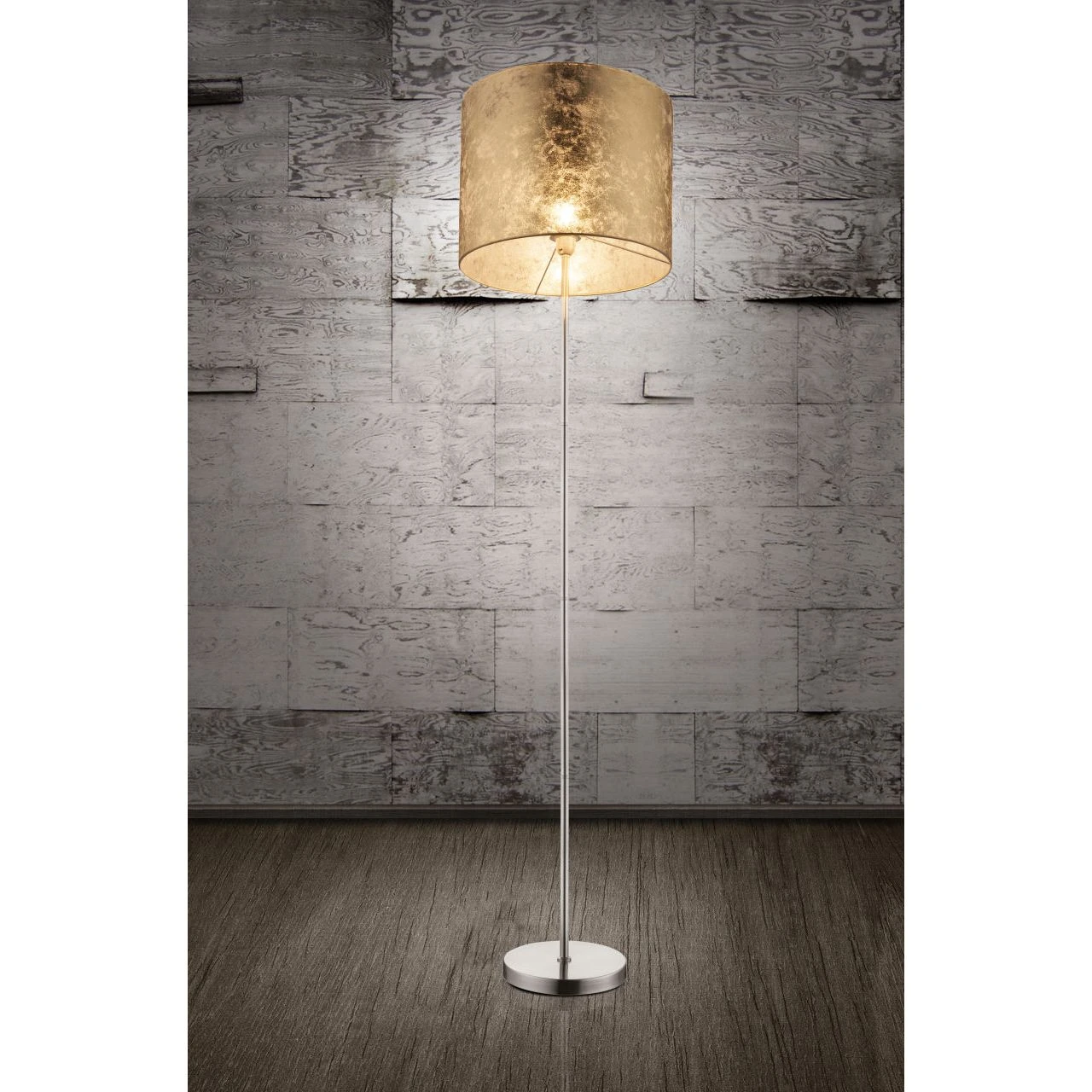 Stehleuchte in Nickel-matt mit Schirm goldfarben