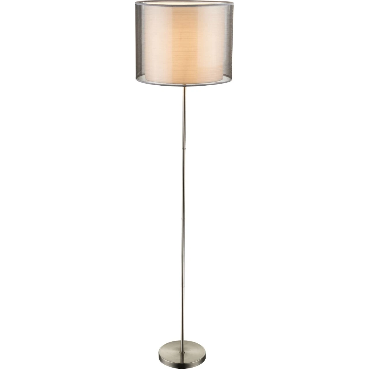 Stehleuchte in Nickel-matt mit Schirm in grau und weiß