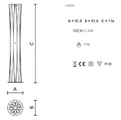 Der Sockel hat eine Höhe von 42cm und der Leuchter einen Durchmesser von 44cm. Gönnen Sie sich Ihren persönlichen Leuchtenträger.