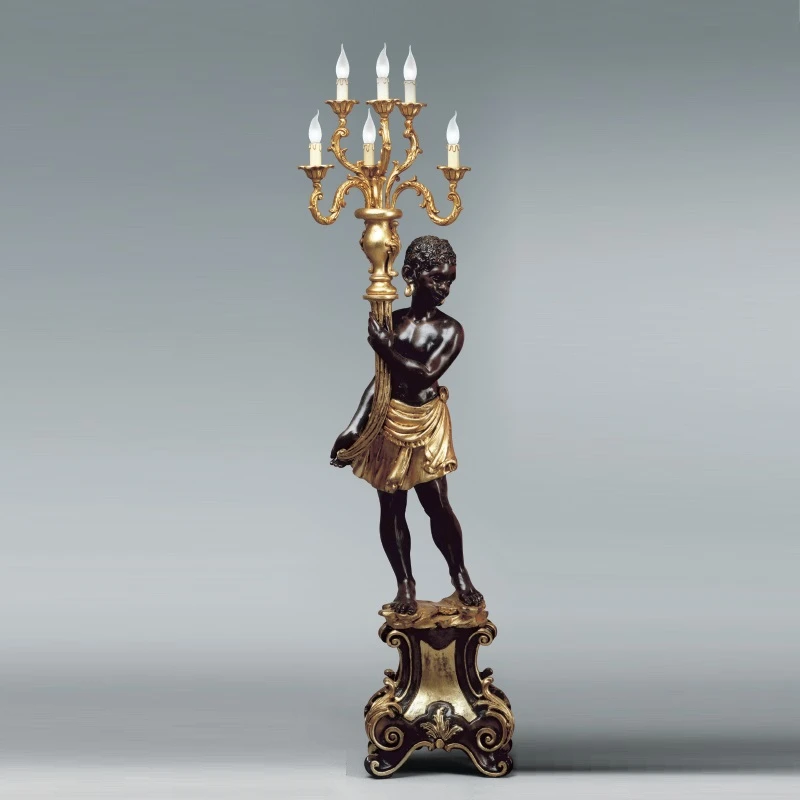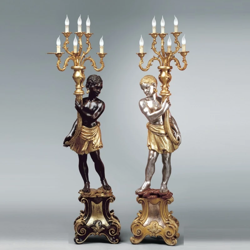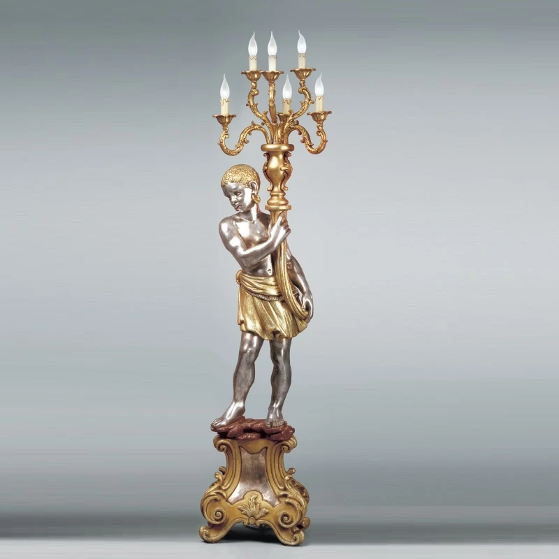 verkörpert diese außergewöhnliche Stehleuchte. Getragen von einem Knaben in Gold gehüllt, verbreitet der Kronleuchter mit sechs Kerzenlampen stimmungsvollen Lichtschein für eine stilvolle Hintergrundbeleuchtung.