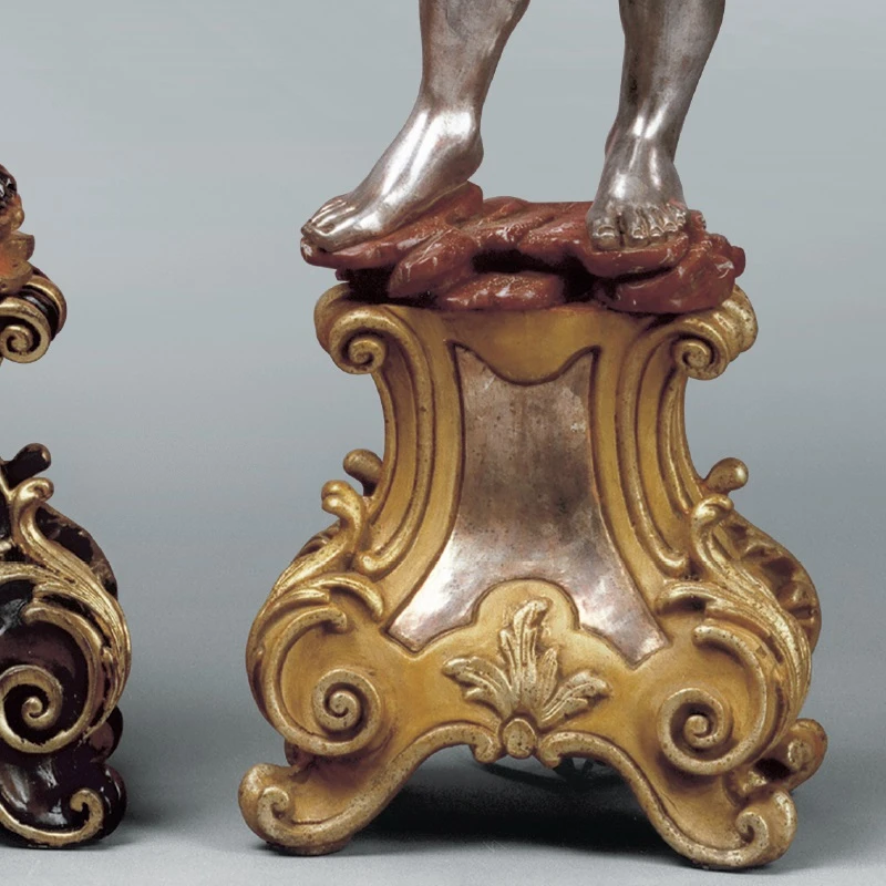 Ein reichverzierter Sockel hebt die Firgur und das Licht in die Höhe und unterstreicht das wertvolle Erscheinungsbild. Die Lichtquelle besteht aus Massivholz und ist in vier Ausführungen erhältlich: