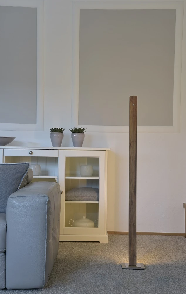 LED-Stehleuchte in Nussbaum von Herzblut, LED-Beleuchtung dimmbar