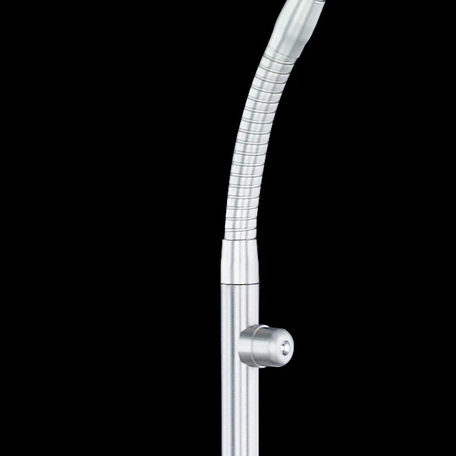 In der kleinen runden Scheibe, die als Leuchtenkopf dient, verbergen sich die 2 warmweißen LEDs mit jeweils 3,18 Watt, 309 Lumen und 2700 Kelvin. In der Leuchtenmitte, in das Standrohr integriert, befindet sich der Tastdimmer zur variablen Gestaltung der Lichtintensität. Der Leuchtenkopf ist mittels eines Flexeinsatzes drehbar, ebenso der Leuchtenhals, da sich mittig nochmals ein flexibles Element befindet.