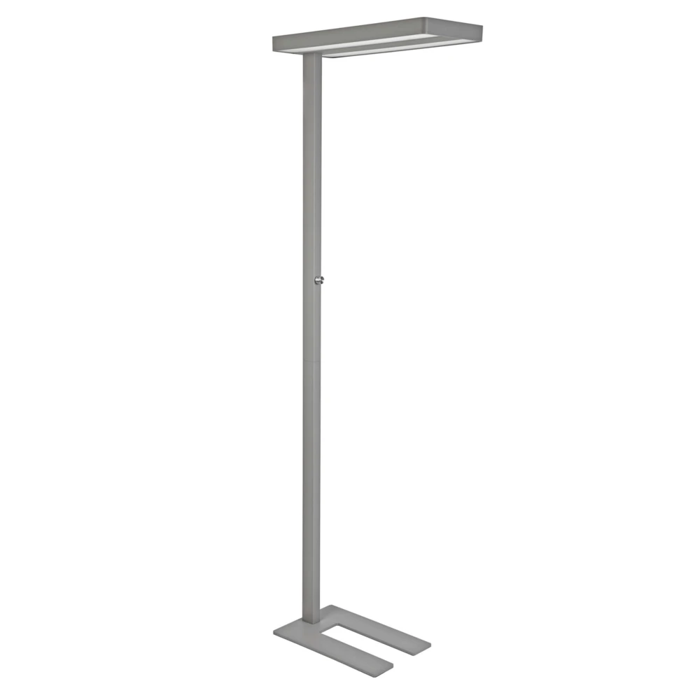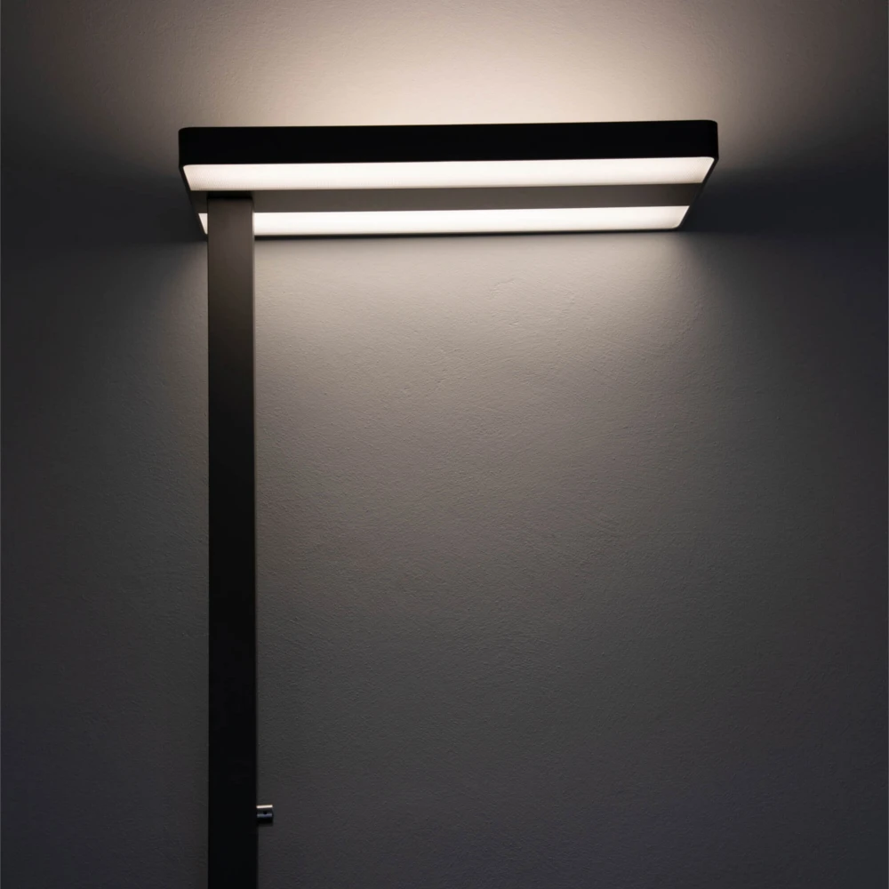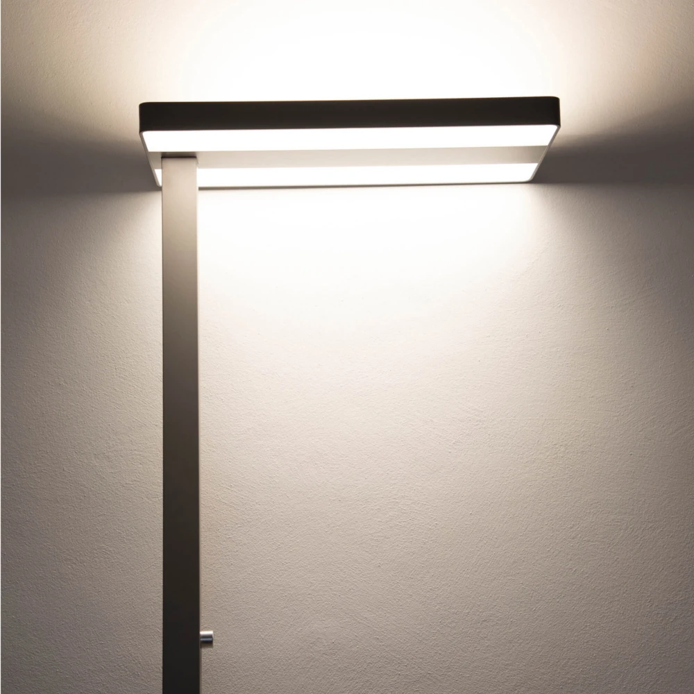 Die 1,95 m hohe Bürleuchte ist dank verbauter LED-Lichttechnik sehr energiesparend und effizient. Mit 80 Watt Stromverbrauch werden 7100 Lumen Lichtstrom erzeugt, die mit einer neutralweißen Lichtfarbe von 4000 Kelvin optimales Licht zum Arbeiten erzeugen. Zudem befindet sich an der Leuchtensäule ein Drehdimmer, mit dem die Helligkeit komfortabel und individuell Ihren Bedürfnissen angepasst werden kann.