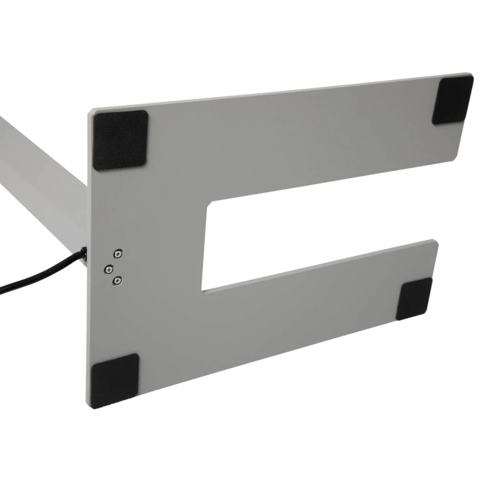Ihr klobiges, technisches Design lässt die Bürostehleuchte in jedes Arbeitszimmer integrieren und behält durch den stabilen und massiven Fuß, der in der Mitte eine Aussparung für Tischbeine hat, ihre Standfestigkeit.