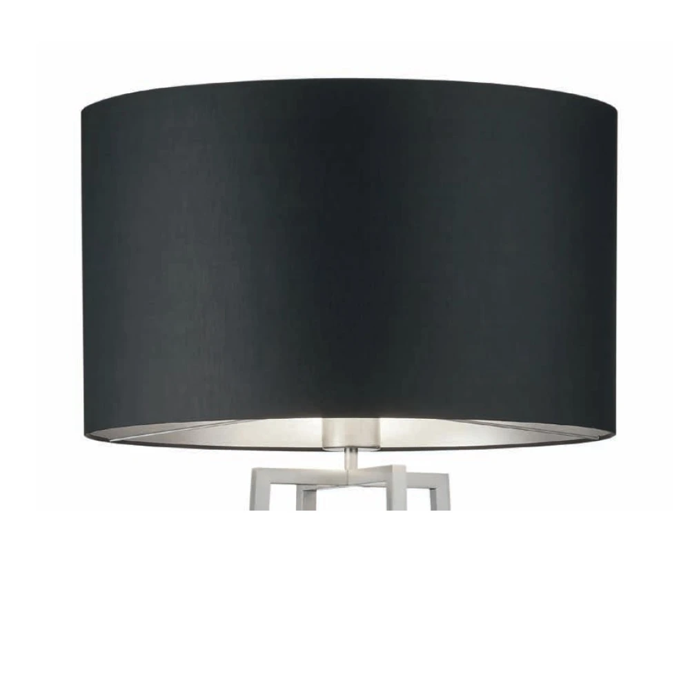 Der Ständer – ein klassisches Dreibein aus Messing, dessen Oberfläche in Nickel matt oder Messing matt veredelt ist. Der Schirm – krönt den Leuchtenfuß mit voluminösen 50 cm Durchmesser aus edlem Chintzstoff. Die Variante in Nickel matt trägt einen schwarzen Lampenschirm, der innen Silber ist. Die Leuchte in Messing matt trägt einen weißen Lampenschirm.
