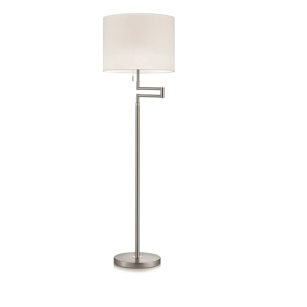 Die Stehleuchte begeistert mit klassischem Design. Auf einem drehbaren Oberteil sitzt der Lampenschirm aus Chintzstoff in Weiß. Ein Zugschalter am Lampenschirm darf bei eine klassischen Stehlampe nicht fehlen.