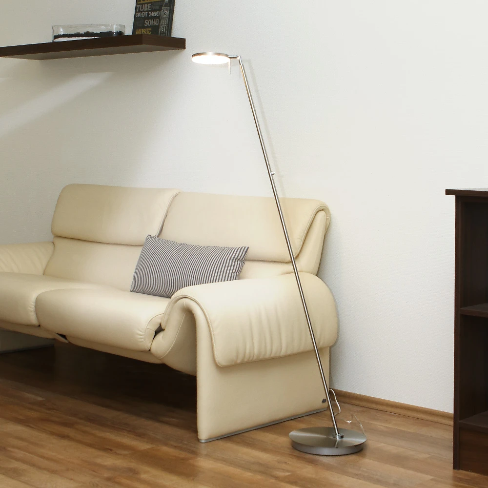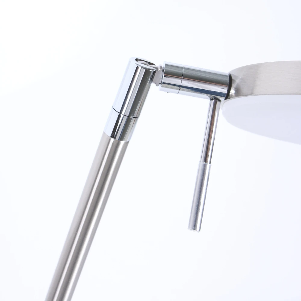 In modernen Wohnbereichen bietet die LED-Standleuchte in Nickel-matt mit Chrom abgesetzten Elementen als Arbeitslicht oder Leseleuchte ein perfektes Licht.
