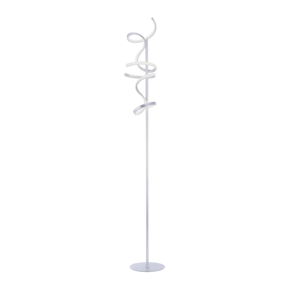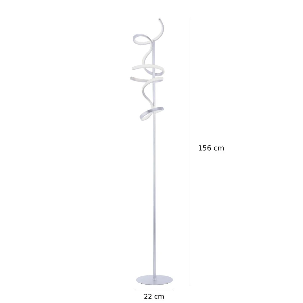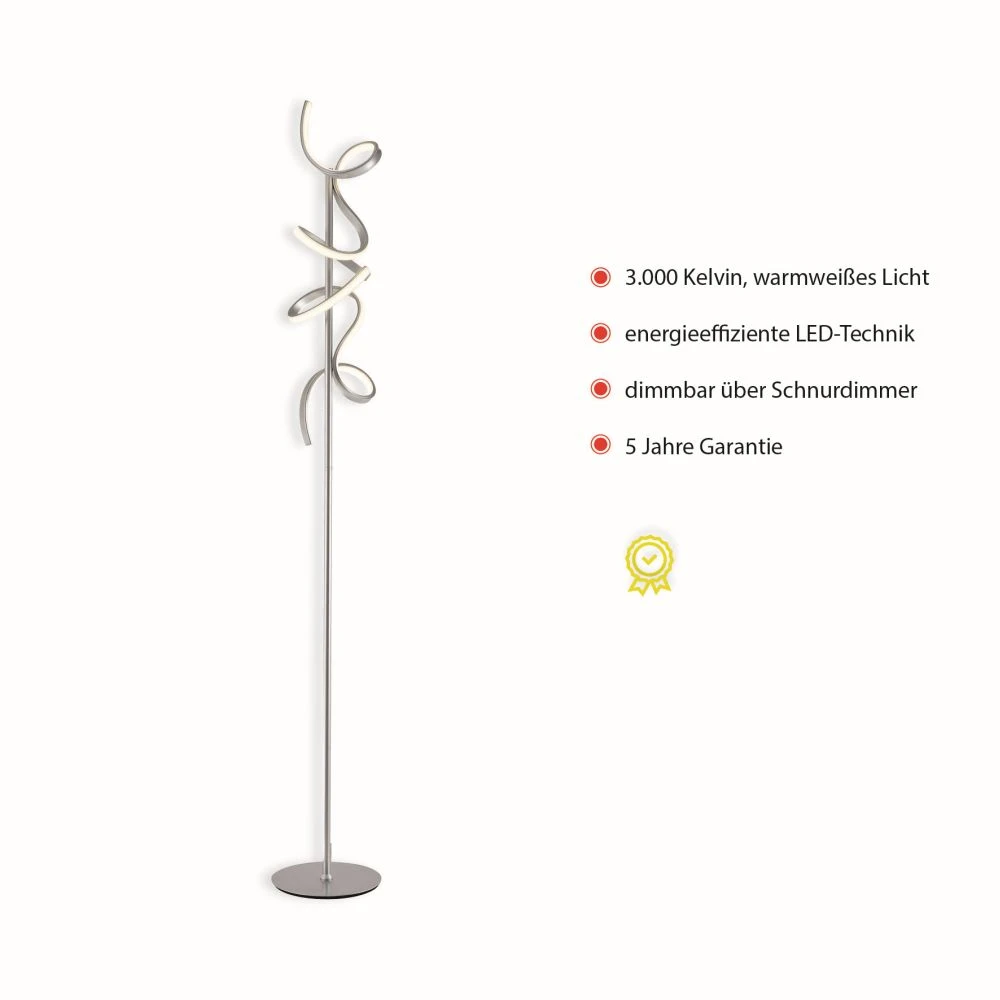 Die silberne LED Stehleuchte punktet mit einem geschwungenen Design. Die aus Stahl gefertigte Leuchte wird mit einem festverbauten LED-Leuchtmittel geliefert und wirkt mit einer Farbtemperatur von 3000 K angenehm warmweiß. Das helle Licht der LED Stehlampe kann stufenlos über den integriertem Schnurdimmer ganz nach Belieben gedimmt werden. Durch das verspielte Design wird die Stehleuchte garantiert einen besonderen Platz in Ihrem Wohnräumen finden. Die Leuchte eignet sich besonders als Zusatzlicht in Schlafzimmern, Wohn- oder Esszimmern. Schön dekoriert garantiert die Lampe ein echter Hingucker zu werden.