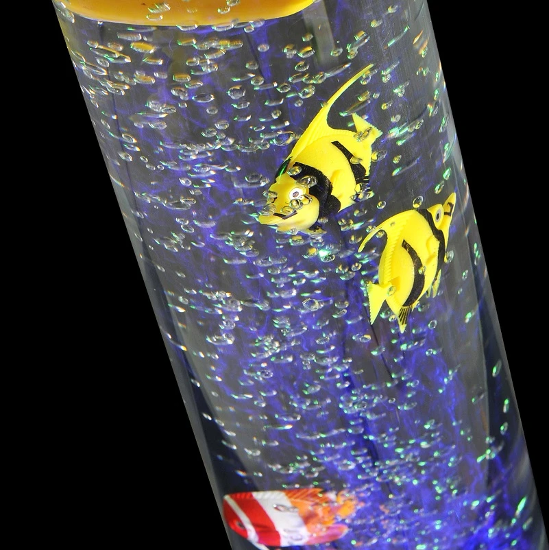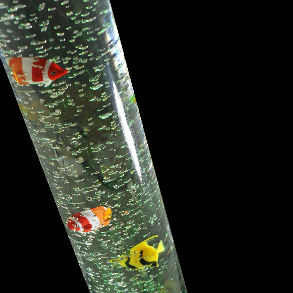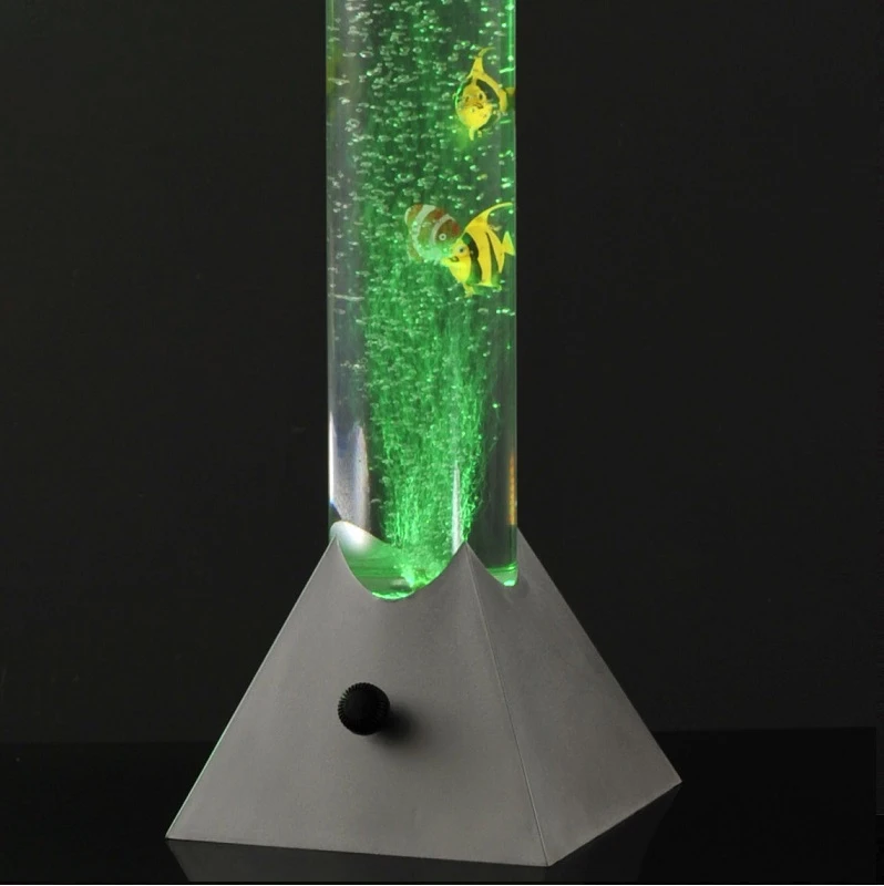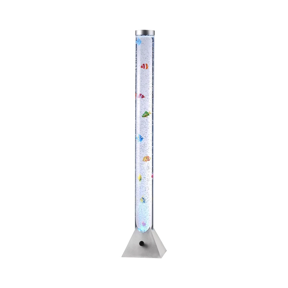 Die dekorative Wassersprudelsäule läuft mit einem ständigen Farbwechsel und wechselt von grün zu blau oder rot, gelb, lila oder klar. Eine im Sockel integrierte Pumpe lässt die bunten Dekofische mit den unzähligen Blubberbläschen um die Wette tanzen. Mal geht es die Säule hoch und durch den Strudel wieder runter.