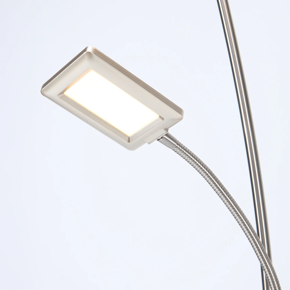 Dimmbarer LED Deckenfluter mit Lesearm, stahl, inklusive LED 25 Watt im Fluter, 3,6 Watt im Lesearm, warmweiß