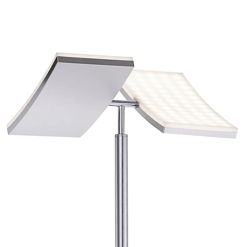 Der Fluterkopf ist in zwei hälfen geteilt. Beide Hälften sind mit je einem LED-Board mit 11 Watt bestückt, die für warmweißes Licht sorgen. Die beiden Hälfen sind schwenkbar. So können Sie den Lichtaustritt auf den von Ihnen gewünschten Bereich richten.