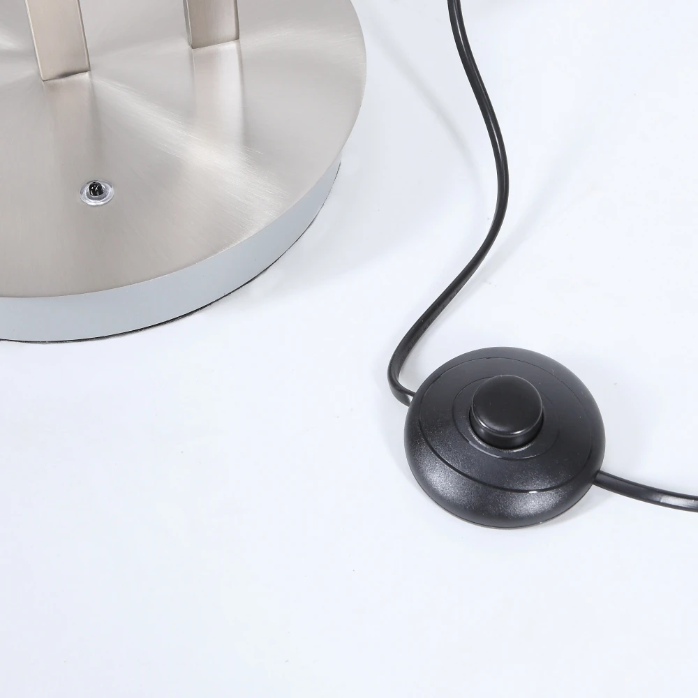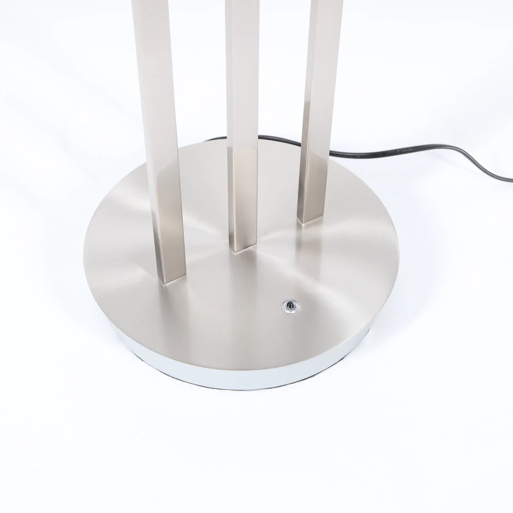 Die aus Stahl gefertigte Stehleuchte wird inklusive einem festverbauten 10,6 Watt LED-Leuchtmittel und zwei festverbauten 9,7 Watt LED-Leuchtmitteln geliefert.