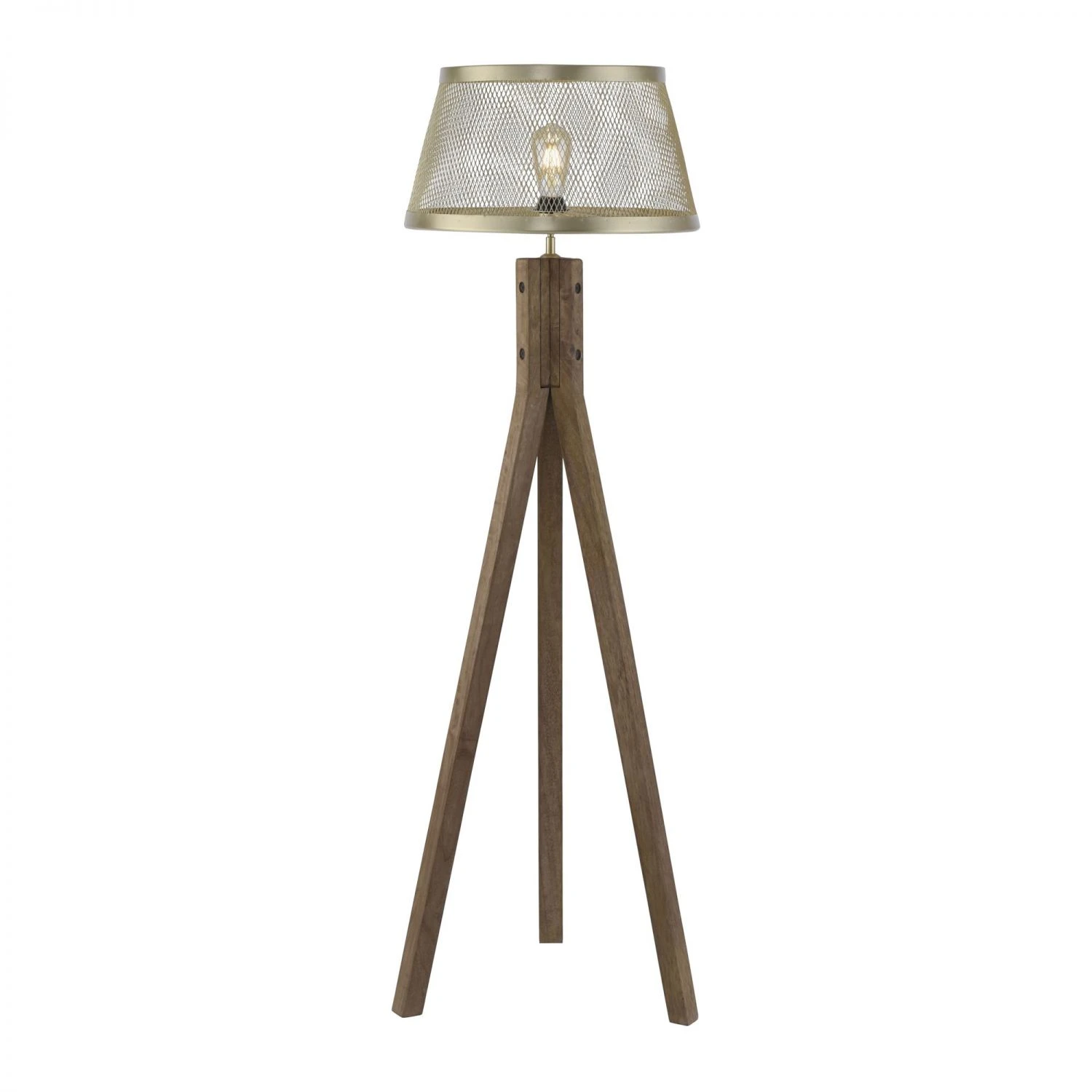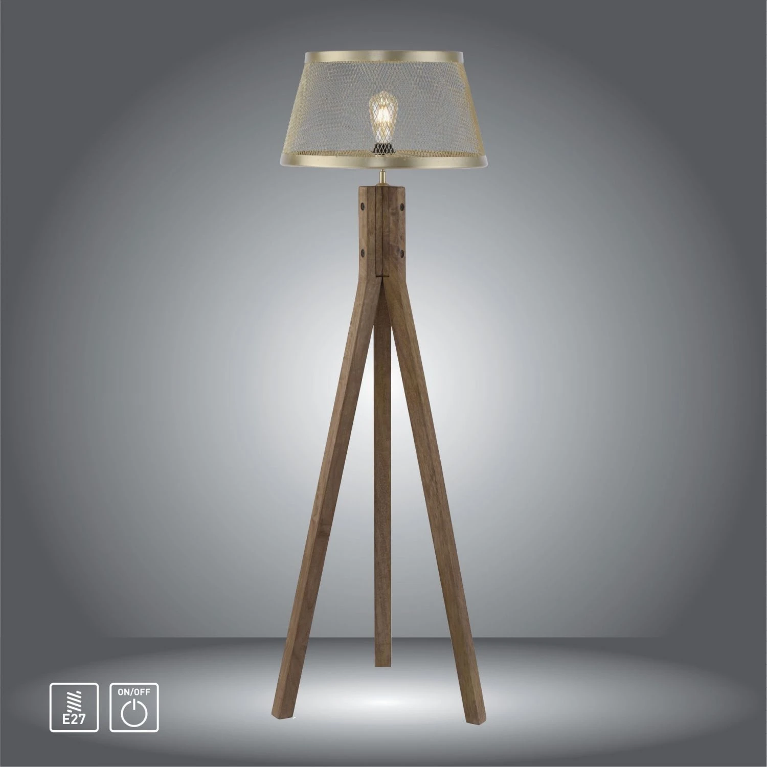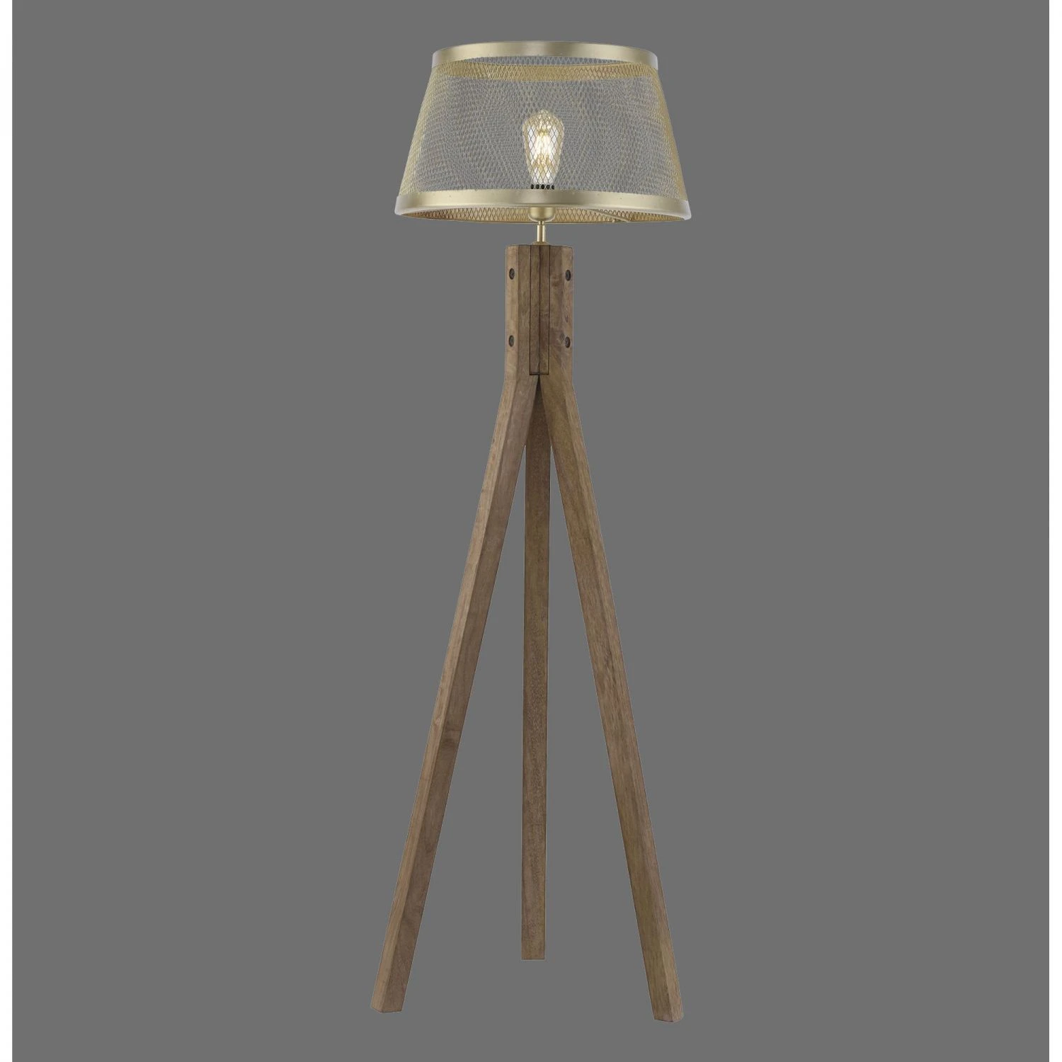 Die Stehleuchte ist hervorragend für eine stimmungsvolle Wohnraumbeleuchtung geeignet. Die Standlampe vereint einen messing matt farbenen Käfigschirm mit einem dreibeinigen Holzgestell. Aufgrund der Durchlässigkeit des Lampenschirms wirkt hier ein Filament-Leuchtmittel besonders stilecht. Das dekorative Design der Lampe mit dem Tripodgestell aus Holz harmoniert ganz besonders gut mit einem skandinavisch ausgerichteten Einrichtungsstil. Als Leuchtmittel kann jedes Leuchtmittel mit einer E27-Fassung und einer maximalen Leistung von 60 Watt eingesetzt werden. Die Leuchte hat einen Durchmesser von 46 cm und eine Höhe von 145 cm.