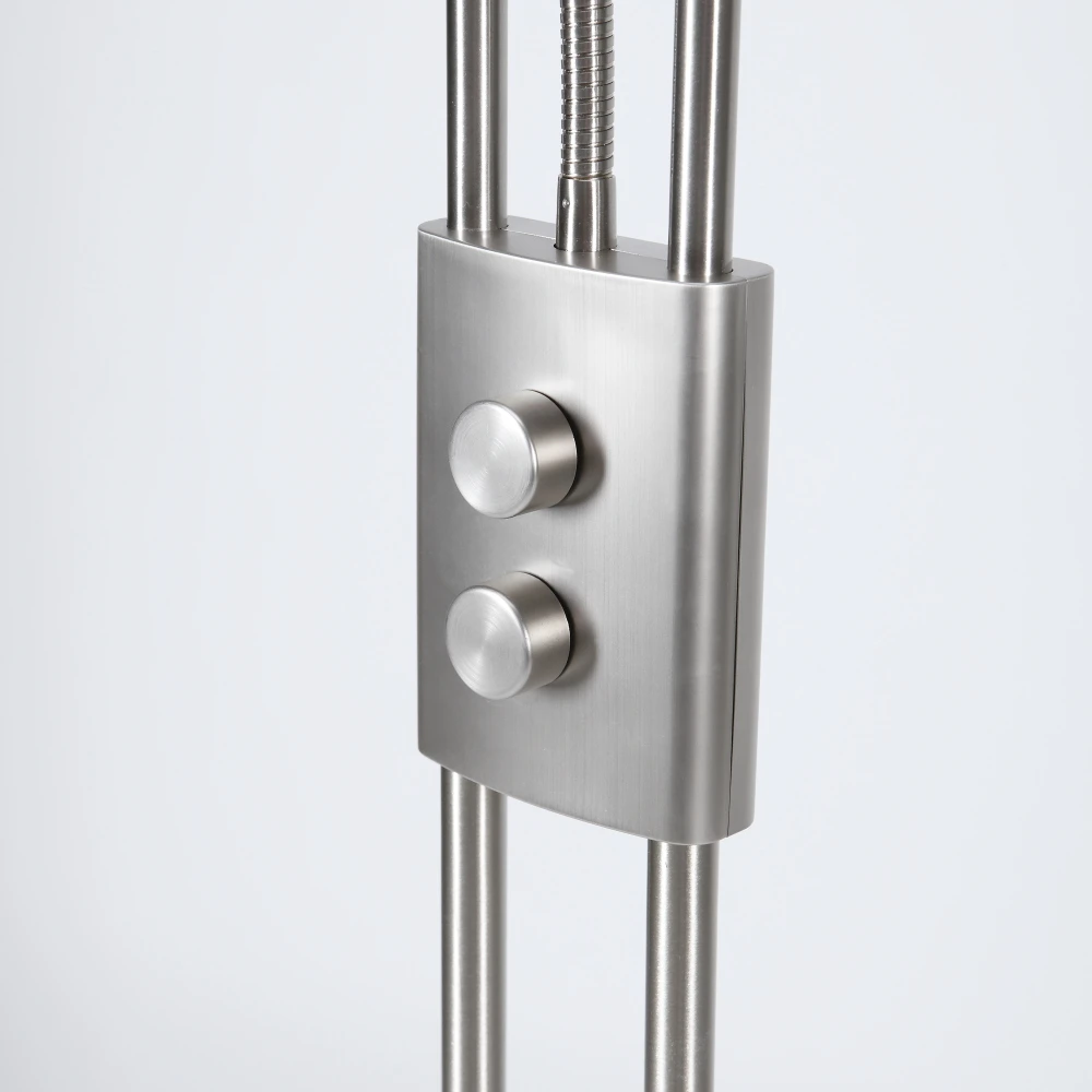 Über den Dimmer am Leuchtenstab ist der Deckenfluter in der Helligkeit stufenlos regulierbar, wobei der Lesearm nur ein-& ausschaltbar ist. Die funktionelle Handhabung taucht somit Räume in angenehmes Licht, egal ob für dekorative Akzente, zum Lesen oder um in gemütlicher Atmosphäre zu entspannen.