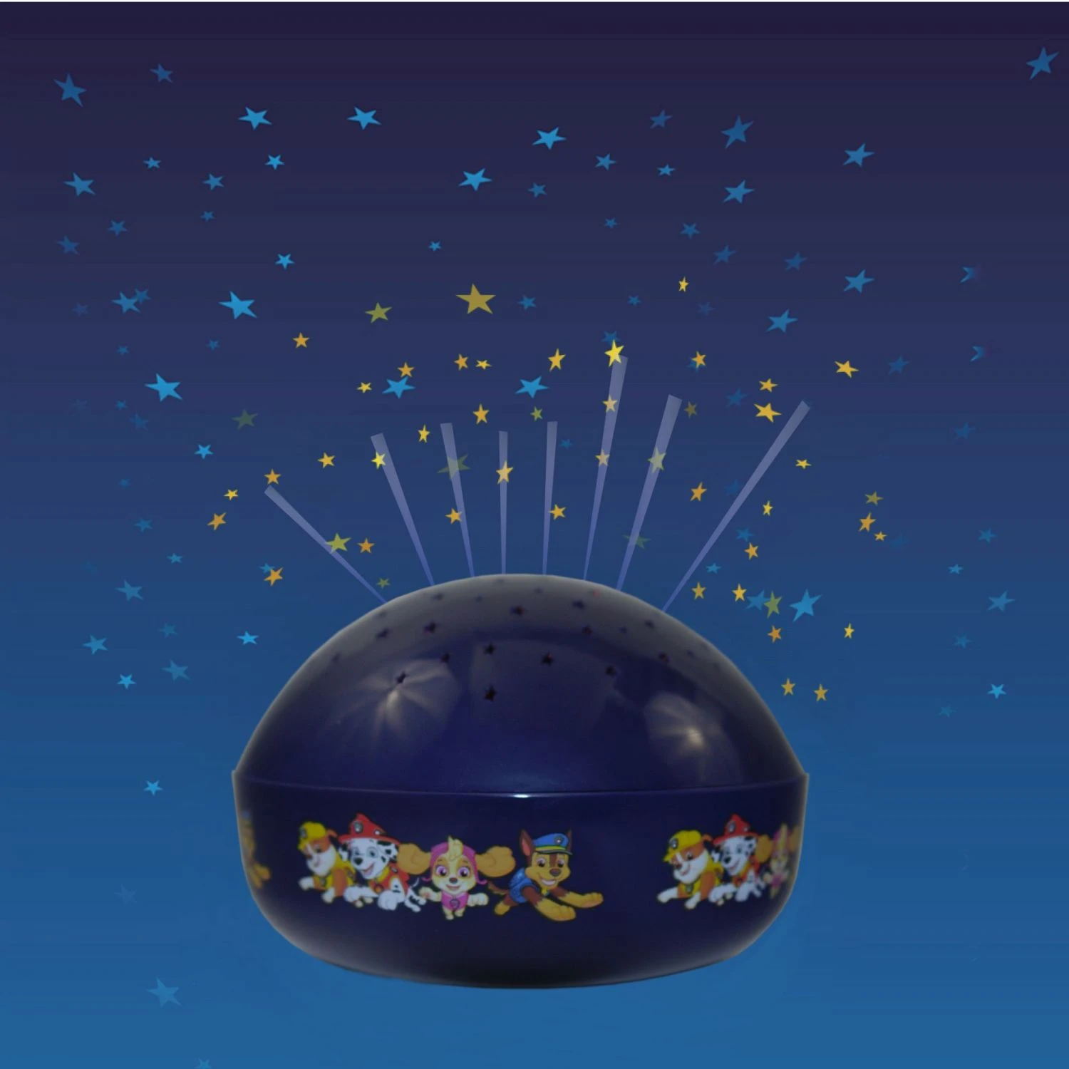 Projektions-Nachtlicht Paw Patrol LED Nachtlicht mit Farbwechsler (gelb, blau, grün)Die Farben können einzeln oder im automatischen Wechsel ausgewählt werden.Das Nachtlicht Projiziert Sterne an die Zimmerdecke.Die Sterne werden bis zu 3 Meter hoch projiziert.Eingebaute Abschaltautomatik nach 45 Minuten. Das Nachtlicht ist nicht Kabel gebunden, Sie können es überall mit hinnehmen.Es ist ein treuer Reisebegleiter und vermittelt auch auf Reisen eine gewohnte Umgebung.Das Batteriefach wird mit einer Schraube verschlossen.Die benötigten Batterien (3 x AA) sind nicht enthalten.Hinweis: Das Paw Patrol – Sortiment umfasst weitere interessante Produkte.