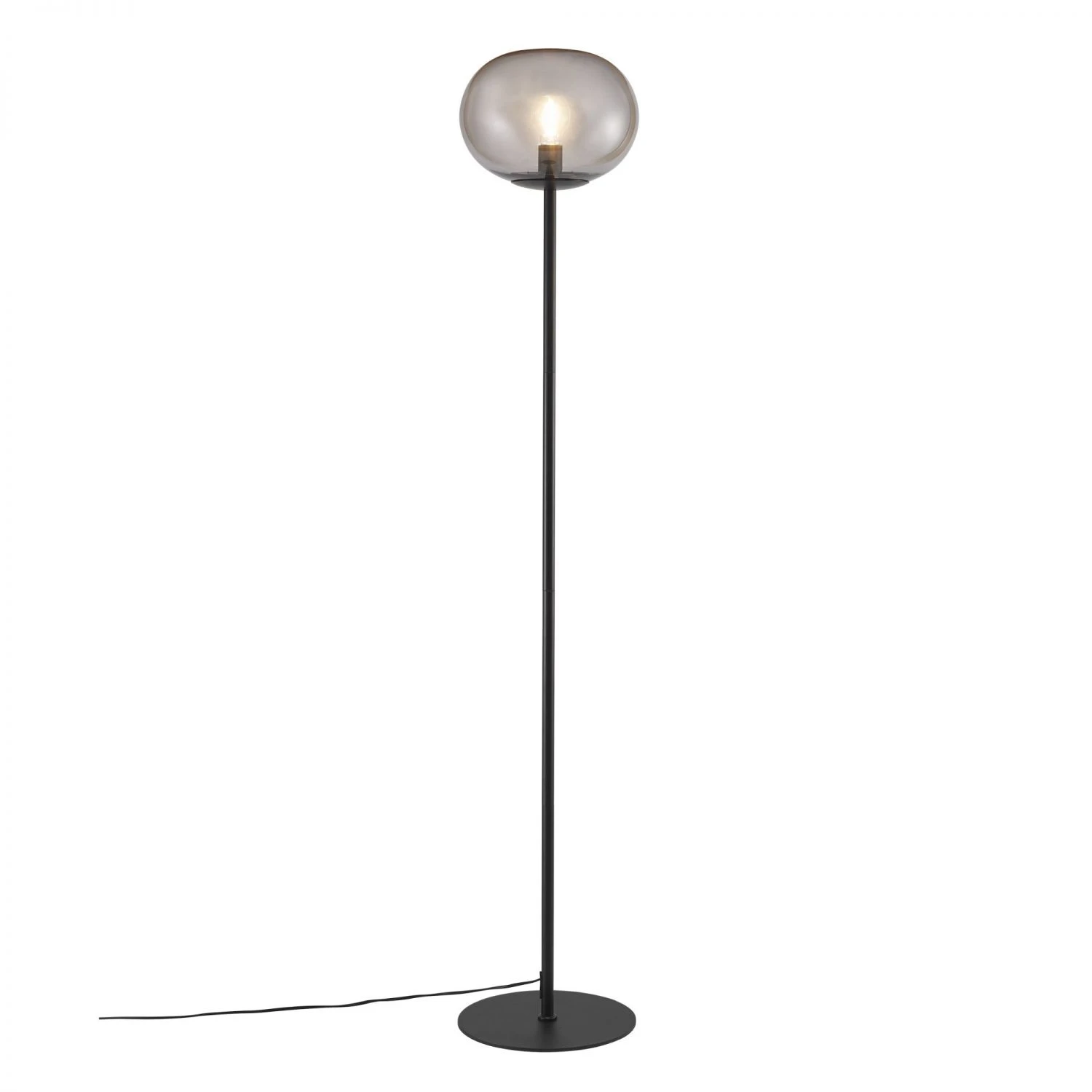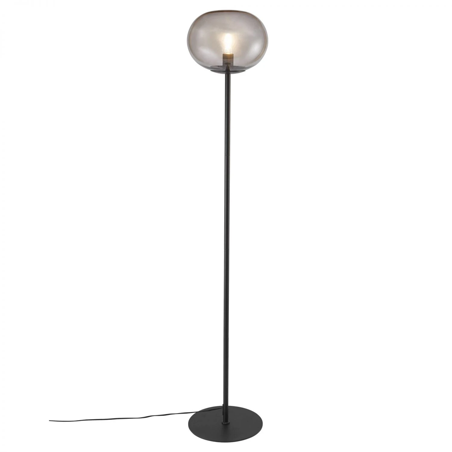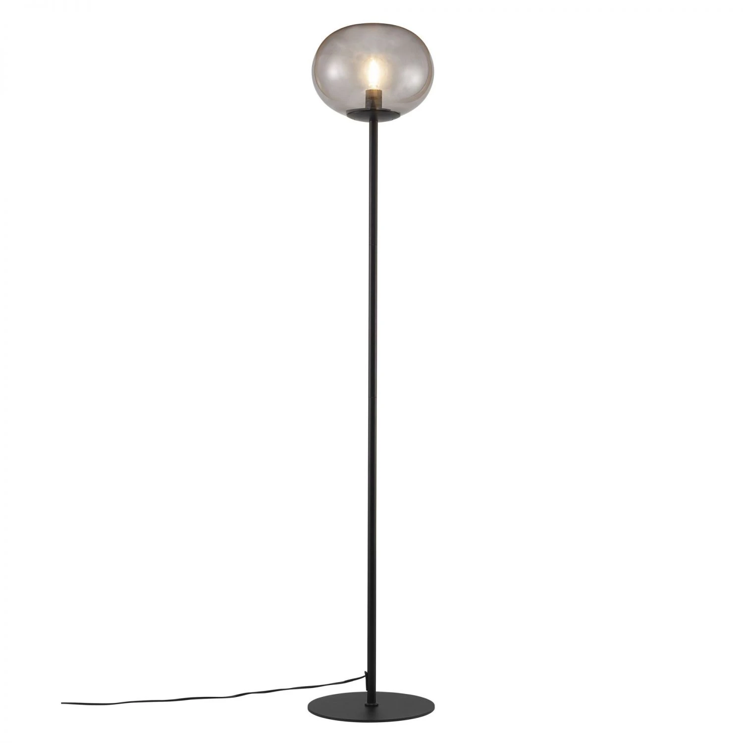 Die Leuchte aus rauchfarbenem Glas sorgt für eine schöne Einheit zwischen der schwarzen Spitze und der wunderbaren runden Form, welche diese Serie so elegant macht. Das rauchfarbene Glas und die hübschen Formen sorgen für ein weiches und warmes Licht, welches für eine angenehme Beleuchtung sorgt. Glas gehört zu den wichtigen Trends in der Einrichtung und die Kombination von Glas mit mattem, schwarzem Metall verleiht ein elegantes Aussehen.Die Leuchte aus rauchfarbenem Glas sorgt für eine schöne Einheit zwischen der schwarzen Spitze und der wunderbaren runden Form, welche diese Serie so elegant macht. Das rauchfarbene Glas und die hübschen Formen sorgen für ein weiches und warmes Licht, welches für eine angenehme Beleuchtung sorgt. Glas gehört zu den wichtigen Trends in der Einrichtung und die Kombination von Glas mit mattem, schwarzem Metall verleiht ein elegantes Aussehen.Die Stehleuchte ist eine ganz besondere Schönheit und kombiniert auf äußerst überzeugende Weise hübsches rauchfarbenes Glas mit schwarzem Metall. Das strenge Design macht diese Stehleuchte zu einer eleganten Skulptur im Zuhause, in dem sie ein weiches und blendfreies Licht verströmt und für eine gemütliche Atmosphäre sorgt. Verwenden Sie ein dekoratives Leuchtmittel, damit die Leuchte noch schöner aussieht.