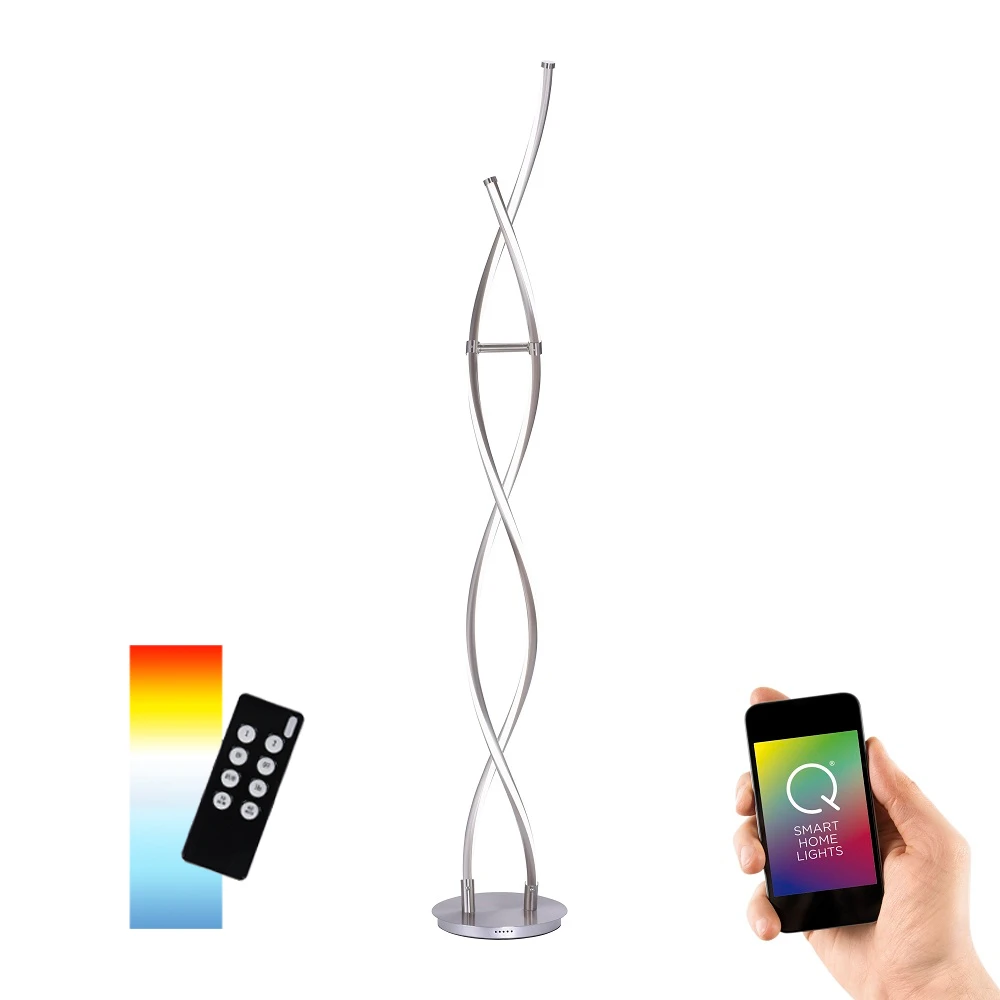 Sie haben die Möglichkeit die Lichtfarbe der Stehleuchte von Warmweiß bis Tageslichtweiß, nach Ihrem Geschmack und Bedarf, zu verändern. Dies erfolgt über die Q®-Fernbedienung, welche im Lieferumfang enthalten ist. Eine weitere Besonderheit ist, dass die Q®-Leuchten in Smart Home Systeme integriert werden können. Diese müssen auf dem ZigBee-Funkstandard basieren.