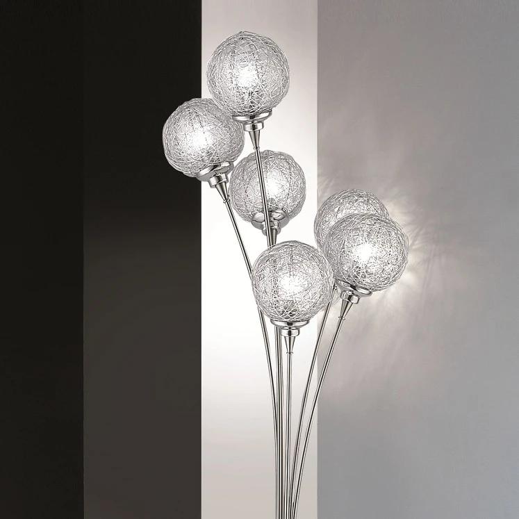 Trotz der eigentlich kompakten Bauweise der Lampenbasis und der soliden Metallarme, scheinen die filigranen Kugeln aus Aluminiumgeflecht leicht und zart.