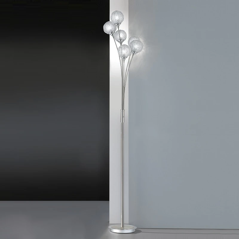 Absolut im Trend liegt das Design dieser 6-flammigen Stehleuchte. Wie ein Strauß voll Licht setzt sich die Leuchte in Szene und wird zum effektvollem Blickfang.