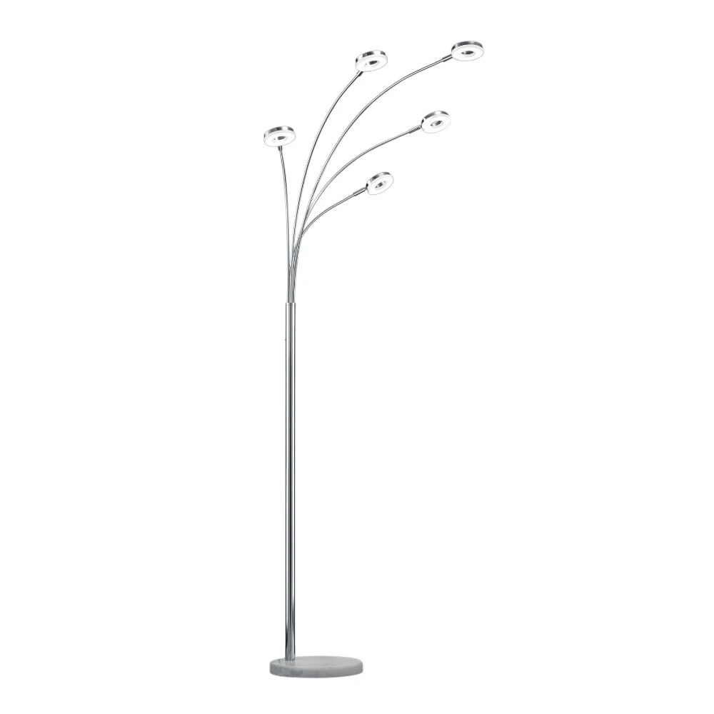 Moderne LED Stehleuchte aus verchromtem Metall mit Keramikfuß in weiß – inklusive 5x 4W LED Leuchtmittel