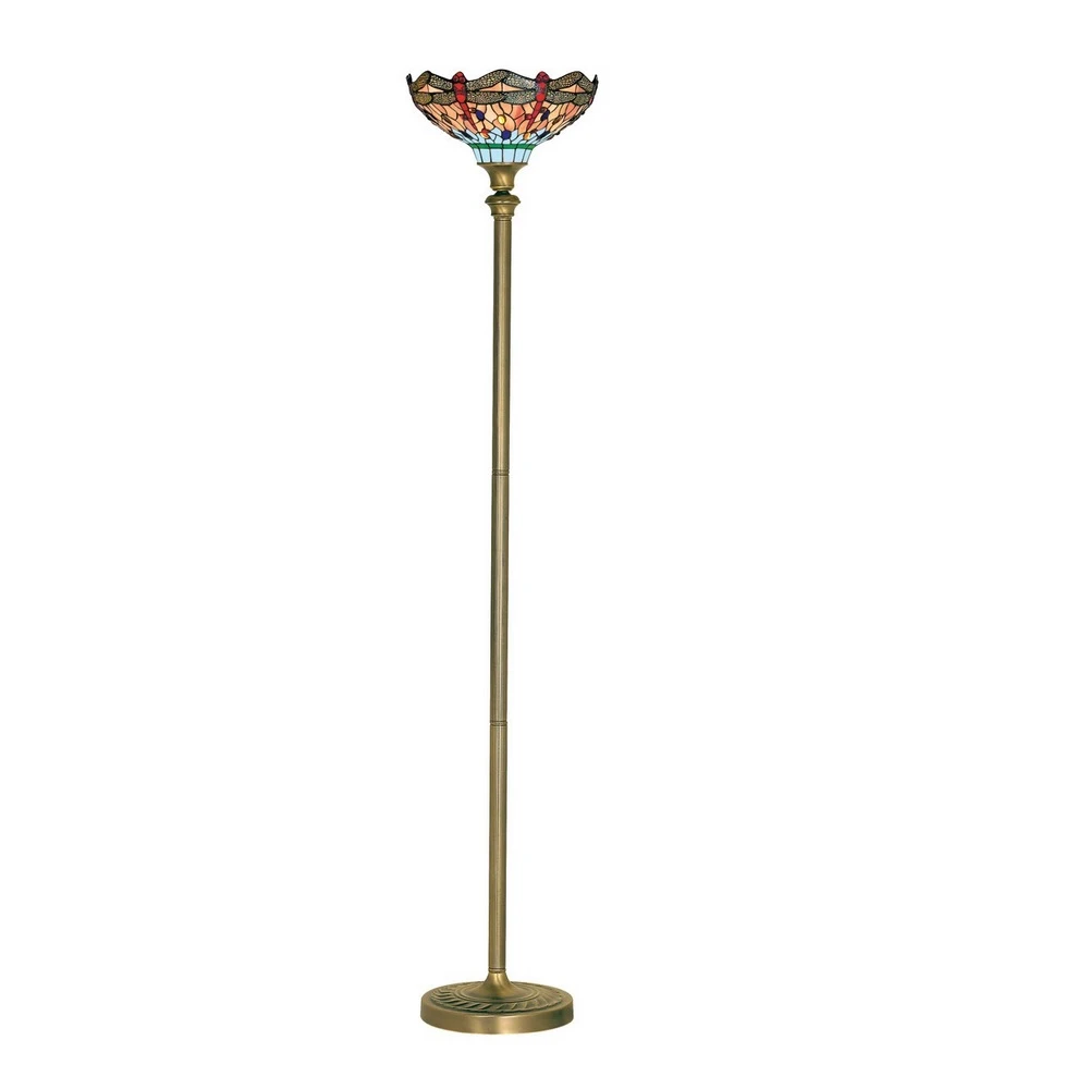 Stehleuchte in Messing Antik mit buntem Lampenschirm aus Tiffanyglas für Leuchtmittel 1 x E27 60 Watt