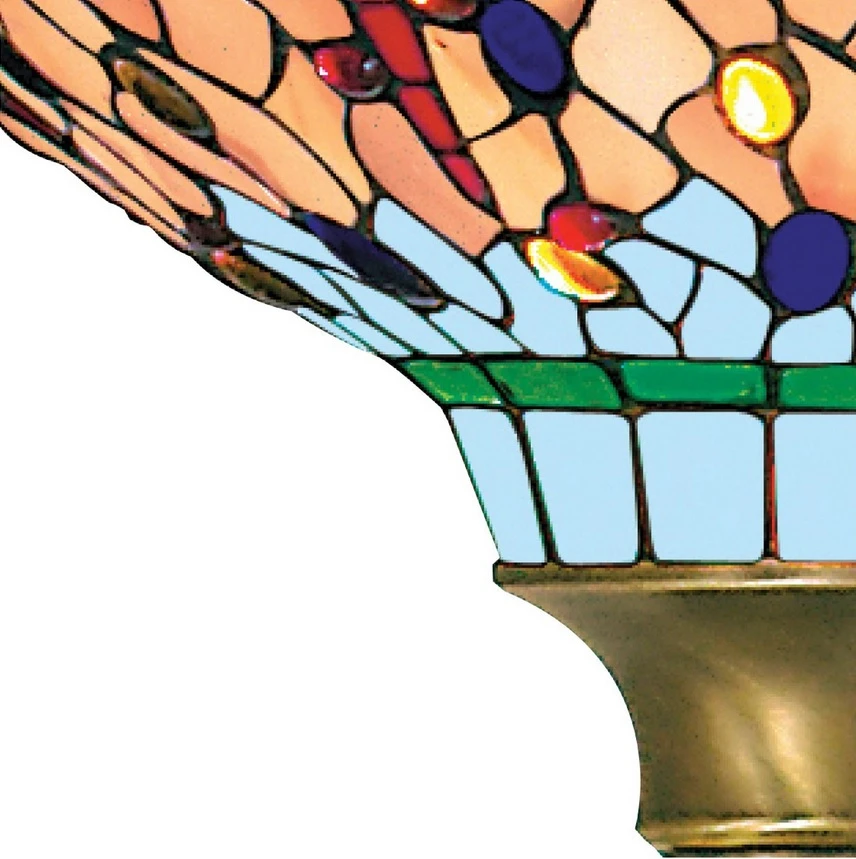 Kombiniert mit Metallelementen in Messing-antik ist die Leuchte zwar Old Fashioned aber nicht aus der Mode gekommen. Im Gegenteil, der Tiffany Stil erlebt immer wieder seine Renaissance und brilliert in vielen Wohnstilen sowie in der Gastronomie- und Hotelbranche.