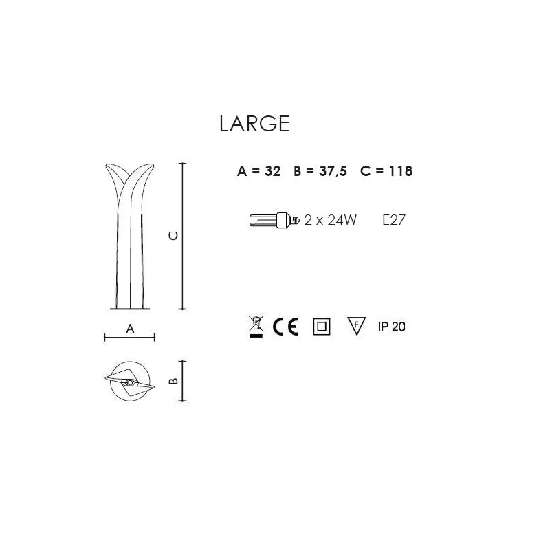 - Stehleuchte Large: Breite: 32×38cm – Höhe: 118cm – Leuchtmittel: 2x E27- 60W