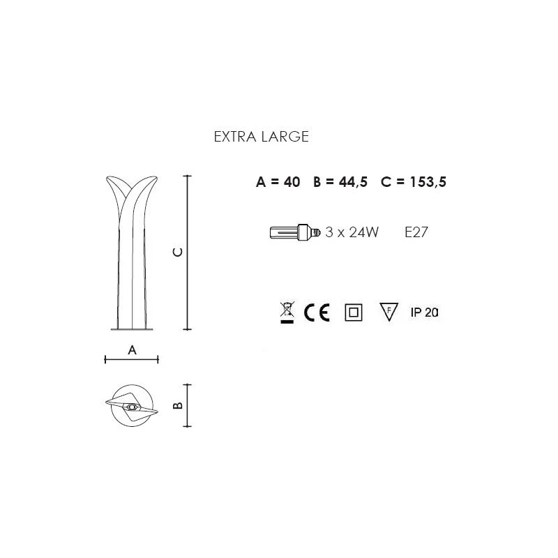 - Stehleuchte XL: Breite: 40×44,5cm – Höhe: 154cm – Leuchtmittel: 3x E27- 60W