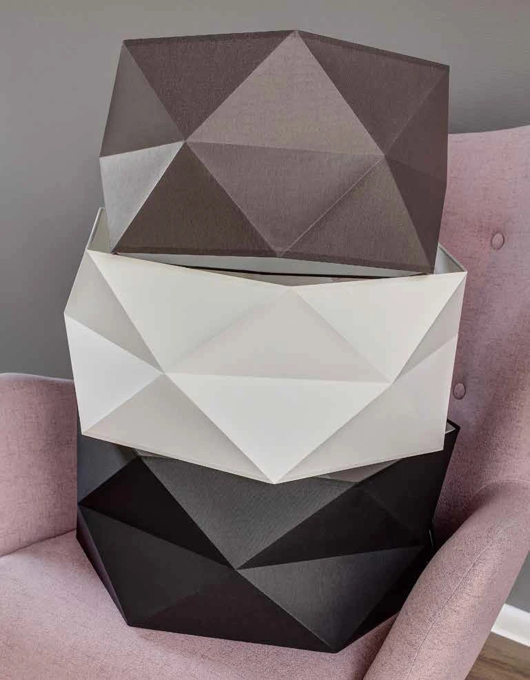 Das liegt vor allem an dem außergewöhnlichen Lampenschirm, an dessen Kanten ein unaufhörliches Spiel aus Licht und Schatten stattfindet.