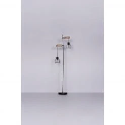 GLOBO höhenverstellbare E27 Stehleuchte aus Holz 2-flammige Stehlampe schwarz und natur mit Schalter
