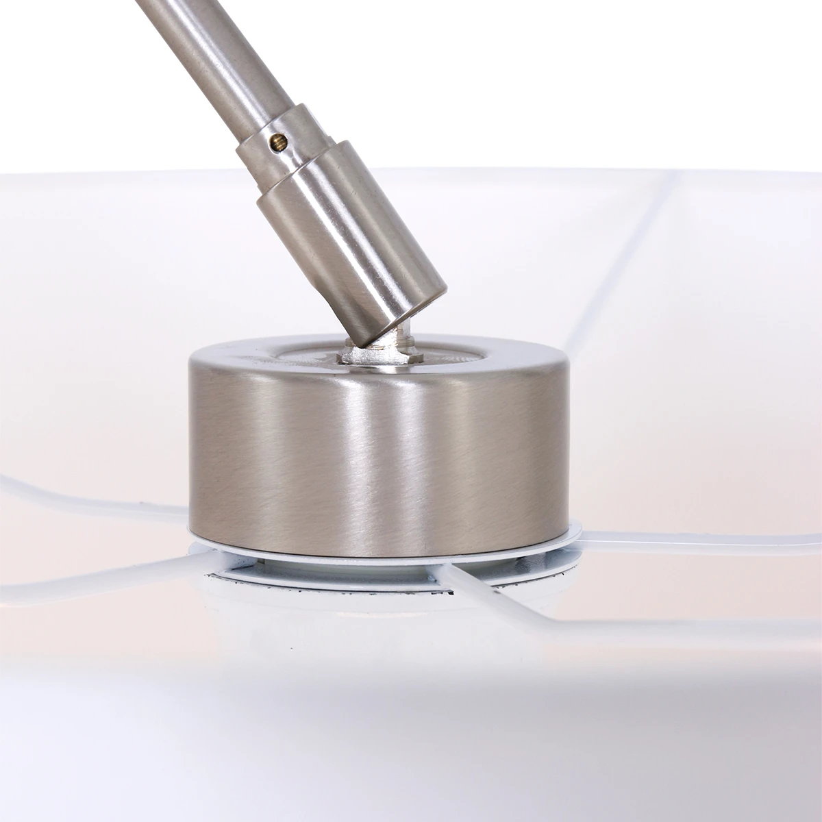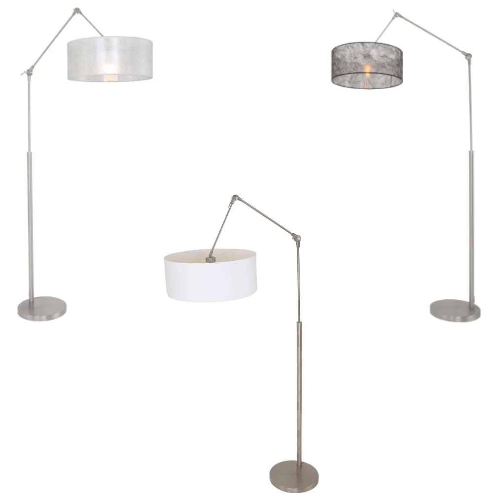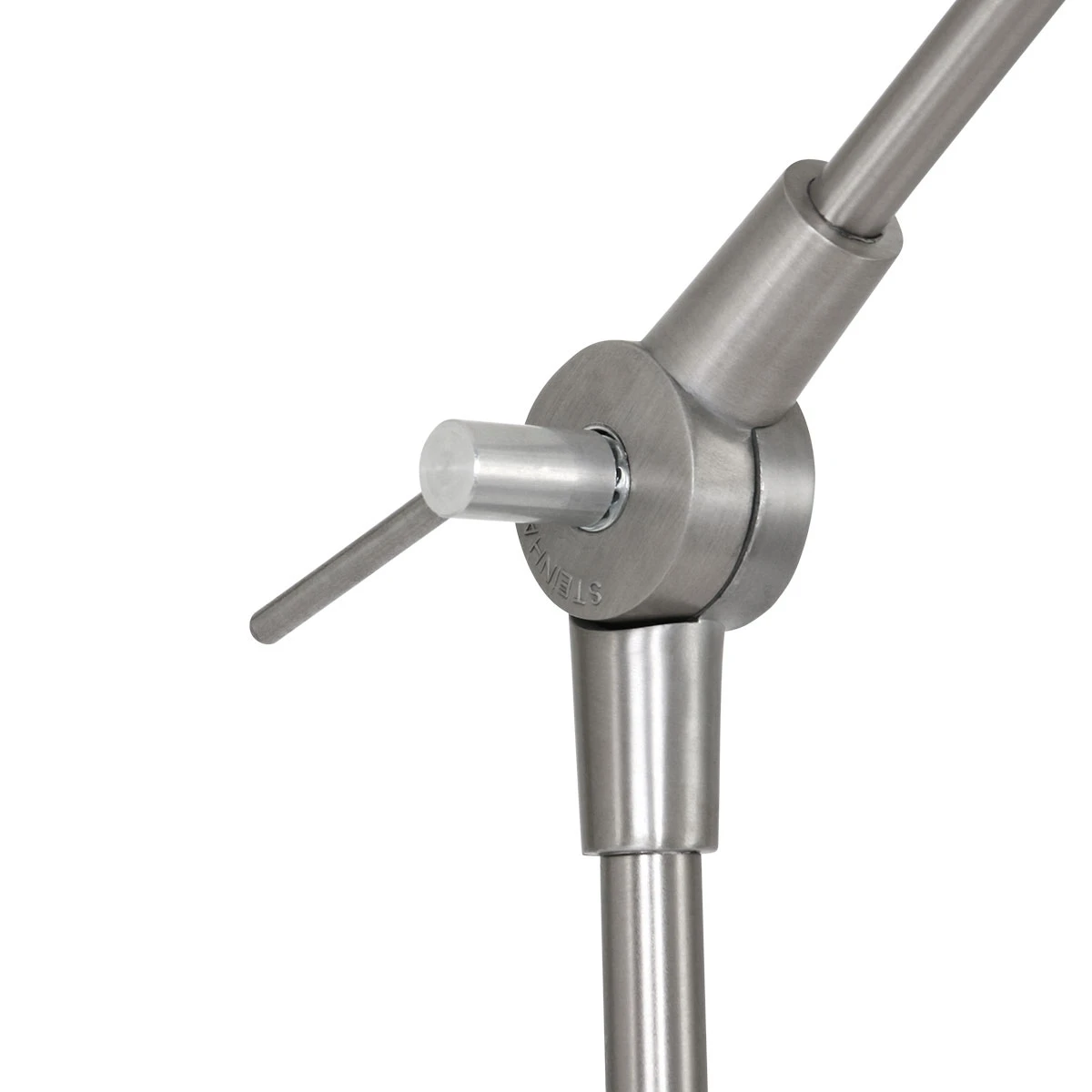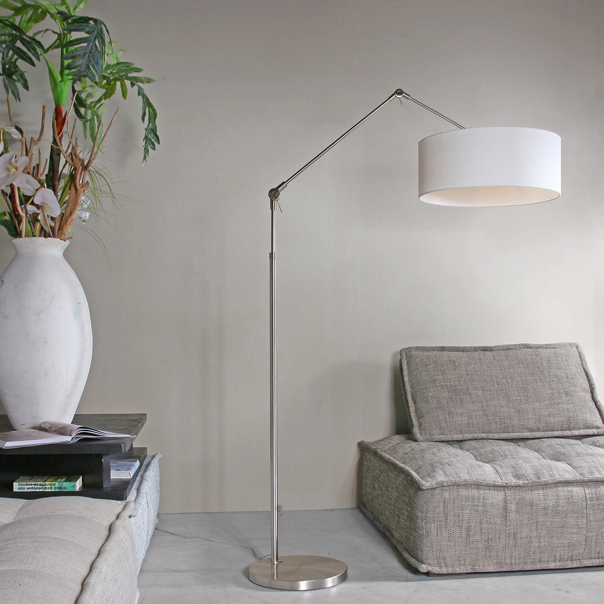 Eine große Stehlampe, die dank ihrer Einstellmöglichkeiten Licht genau dort liefert, wo Sie es möchten. Hergestellt aus gebürsteten Stahlrohren. Die Lampe hat eine E27-Fassung und eignet sich daher besonders für Energiesparlampen, LED-Lampen und Glühlampen. Der Lampenschirm in massivem Weiß hat einen Durchmesser von 50 cm. Ein / Aus-Schalter im Kabel.