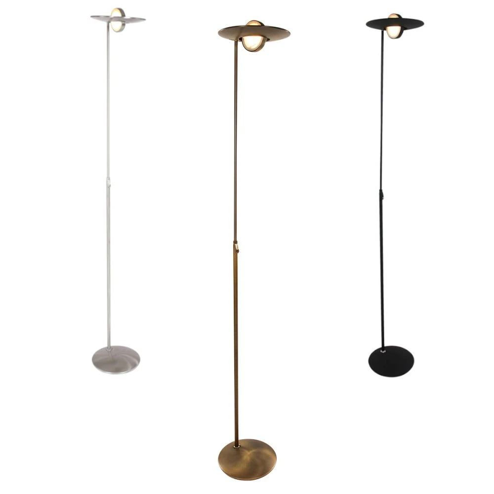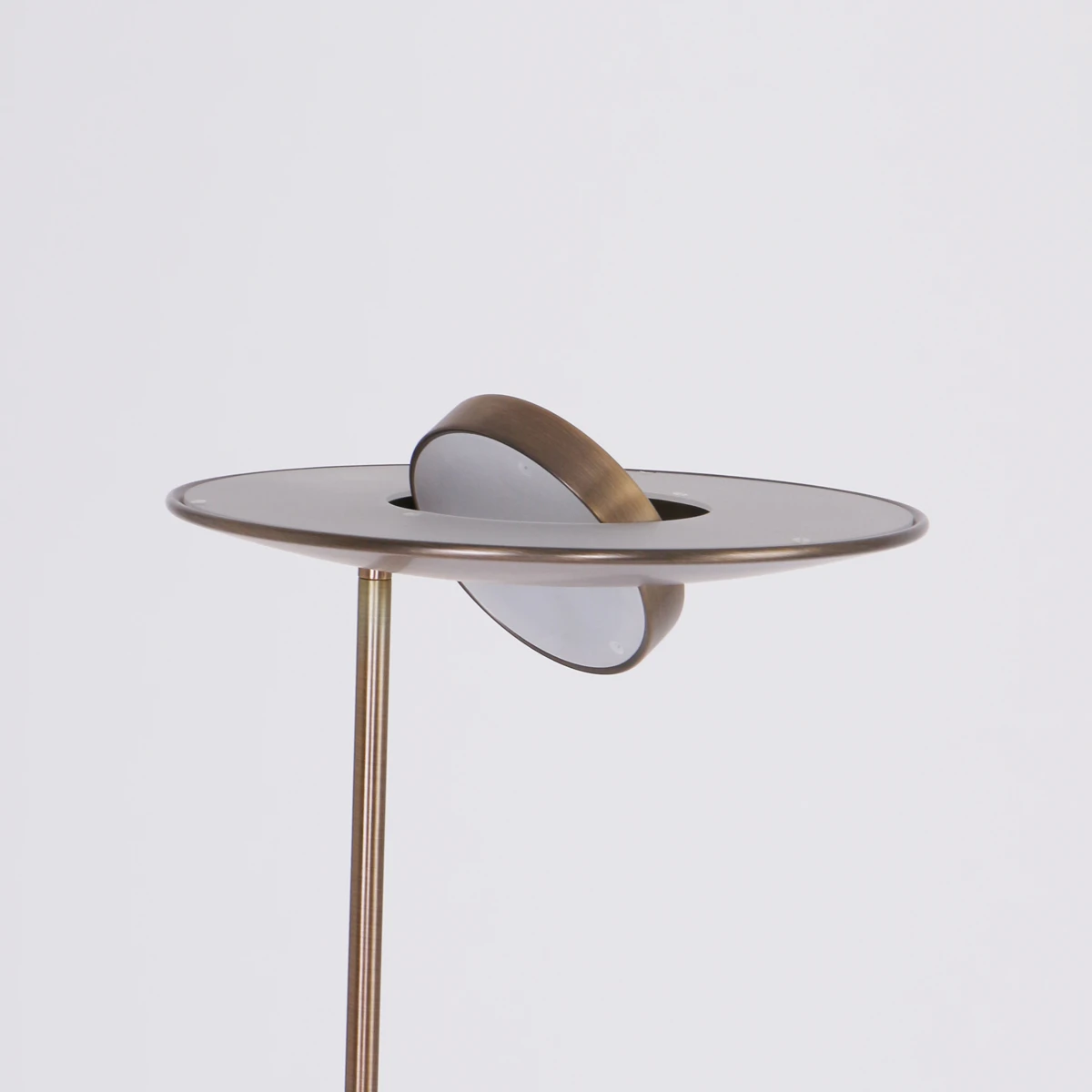 Dieses Modell ist in einer Bronzefarbe erhältlich. Die Leuchte hat eine Höhe von 187 Zentimetern. Der Durchmesser der Stehlampe beträgt 28 Zentimeter. Der Schirm der Stehlampe ist kippbar und der Mittelteil ist drehbar. Die Stehlampe ist mit einem 22-Watt-Leuchtmittel ausgestattet.