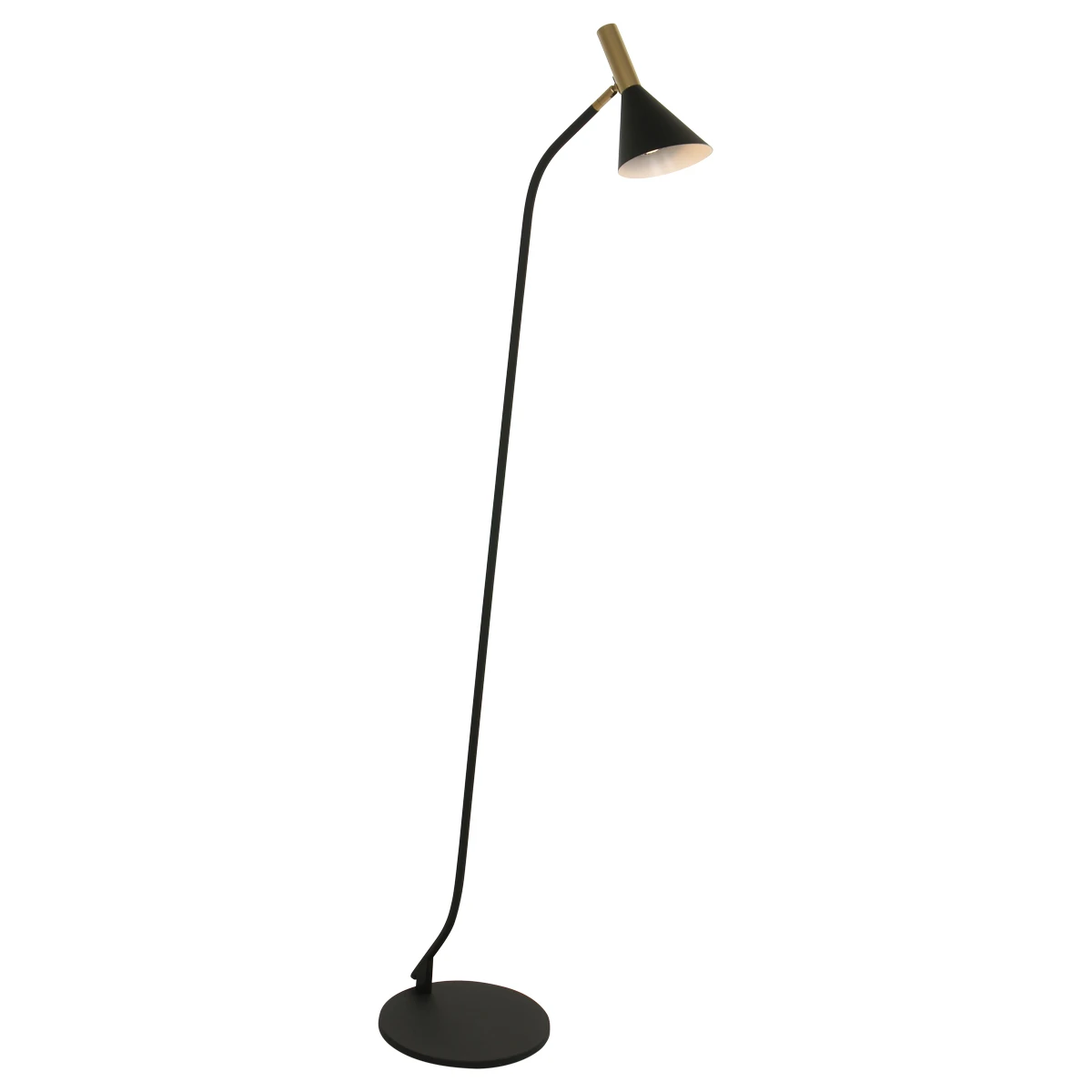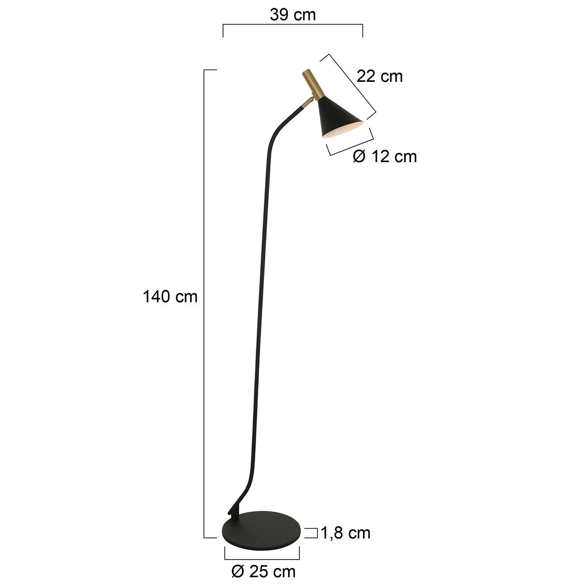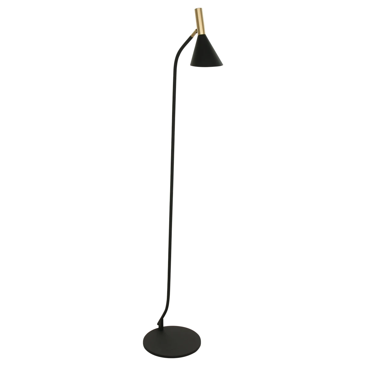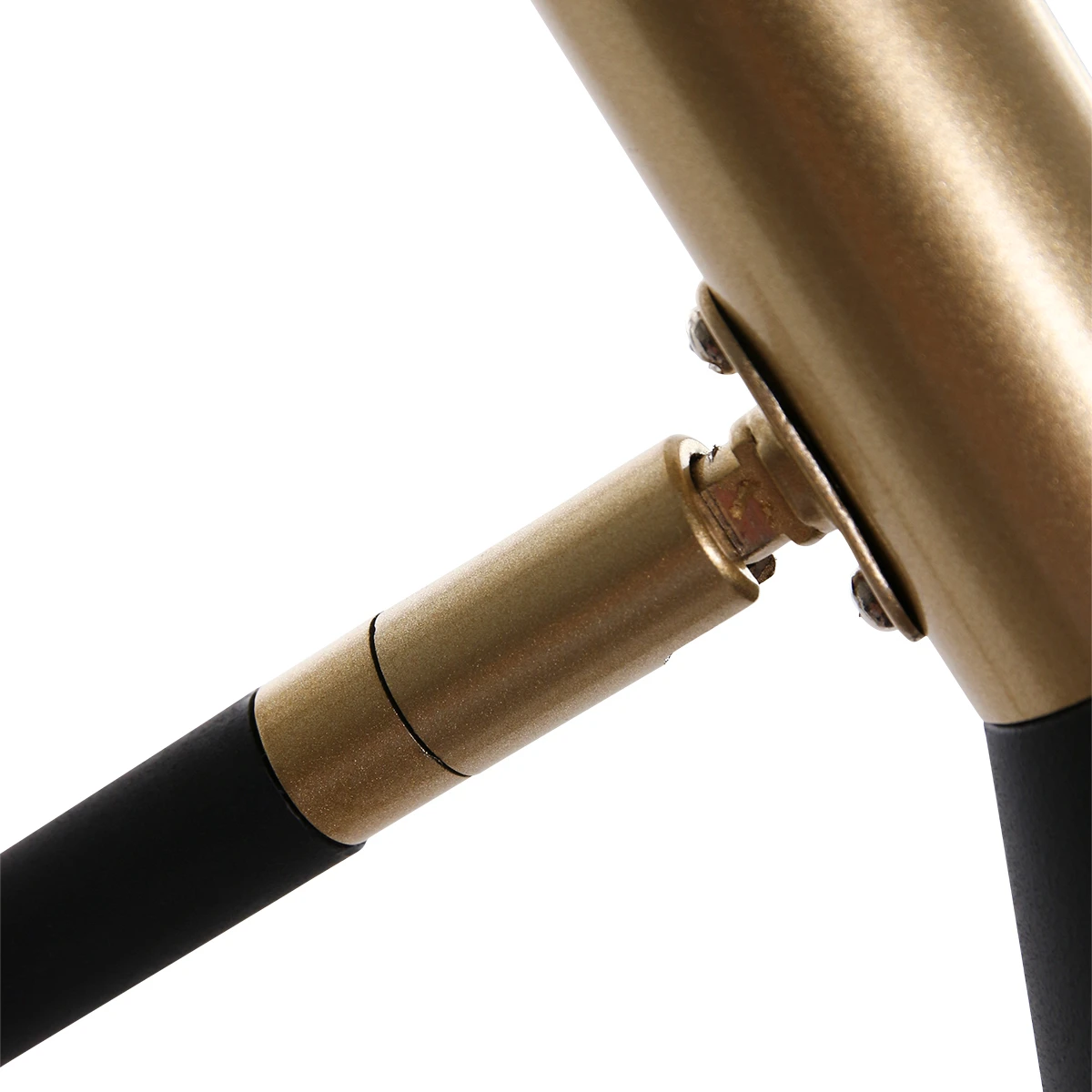Die Stehlampe besteht aus Metall mit einer schwarzen Pulverbeschichtung und goldenen Details. Die Lampe ist kippbar und drehbar, sodass Sie entscheiden können, wo das Licht scheinen soll. Die Haube ist mit einem GU10-Anschluss ausgestattet.