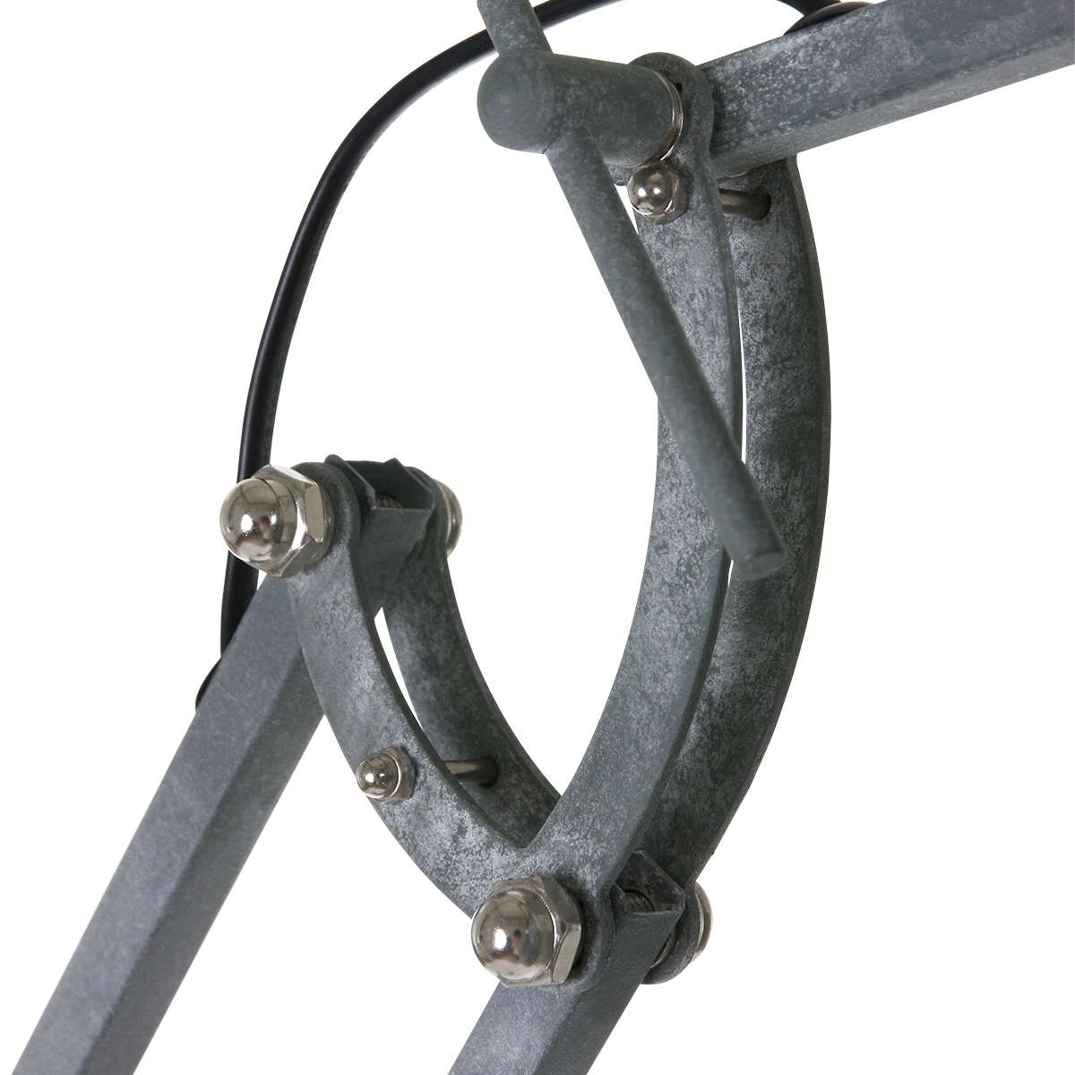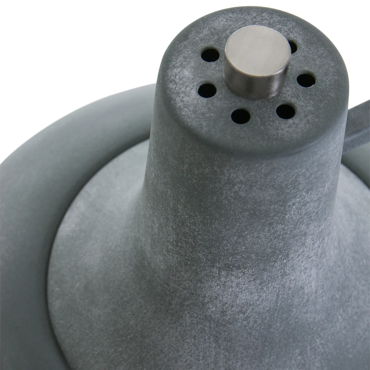 Die graue Stehleuchte in Beton-Optik ist aus Metall gefertigt.