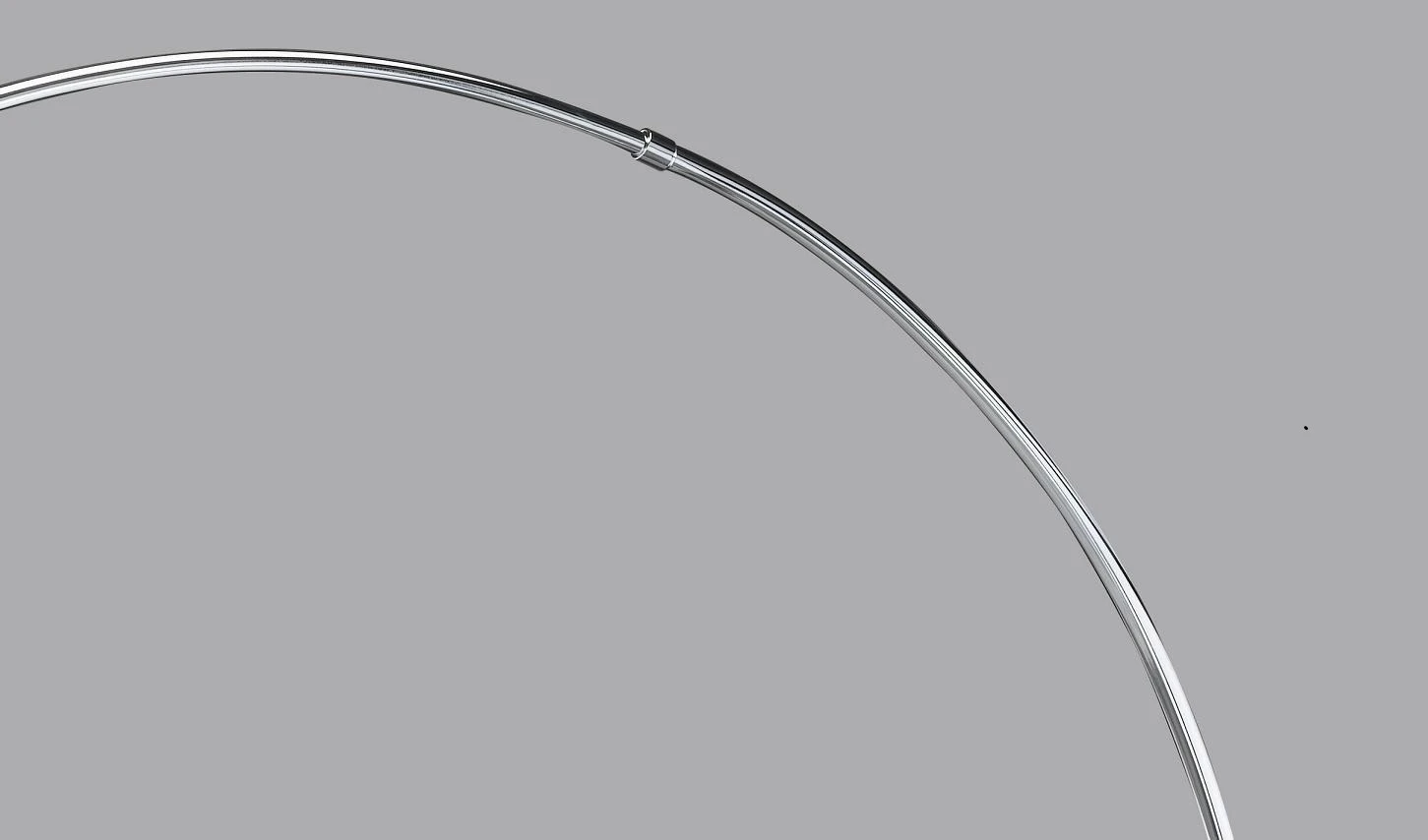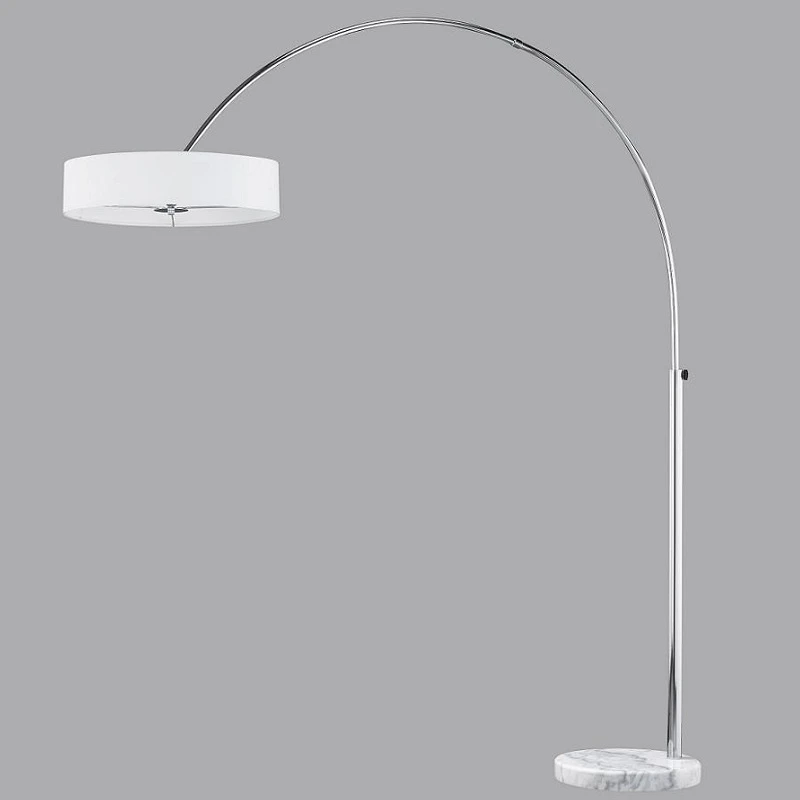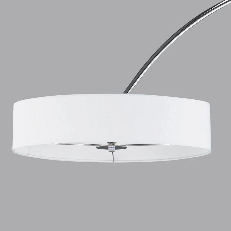 Bogenleuchte Perez in Chrom mit weißem Stoffschirm 50 cm und weißem Marmorfuß