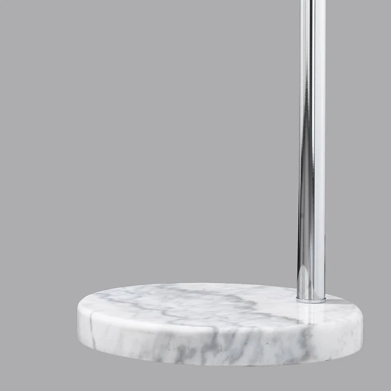 Moderne Bogenleuchte mit Marmorfuß in Weiß.