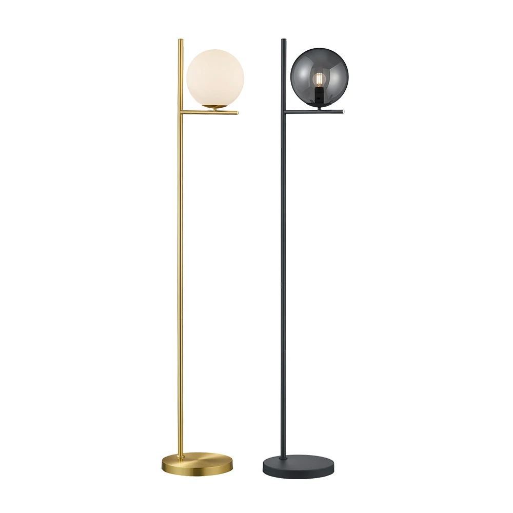 Stehleuchte mit dekorativem Glasschirm in Messing matt mit Fußschalter